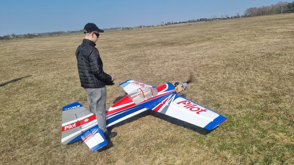 Znowu weekend dopisał więc tym razem odkurzyliśmy yaka. Loty bez maski bo motor jeszcze potrzebował regulacji. Wiało 5-7 m/s ale dla 14 kilogramowego modelu to nie problem. Wiatr był praktycznie nie odczuwalny