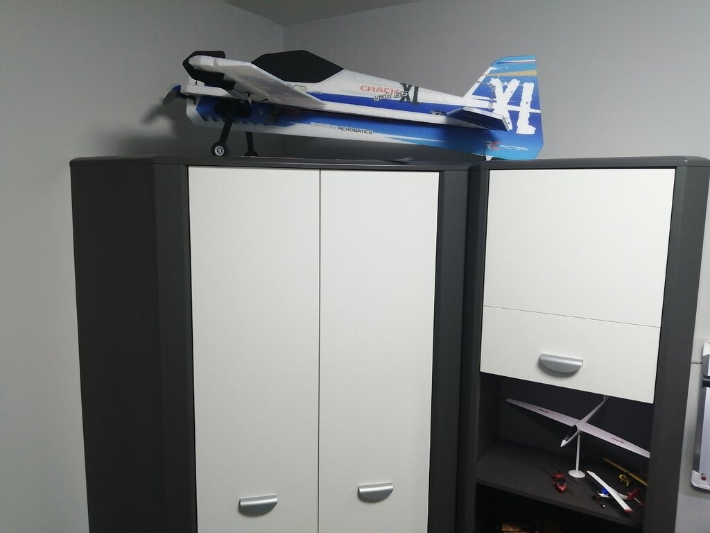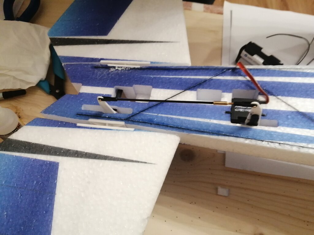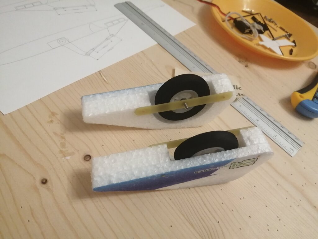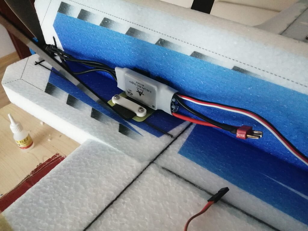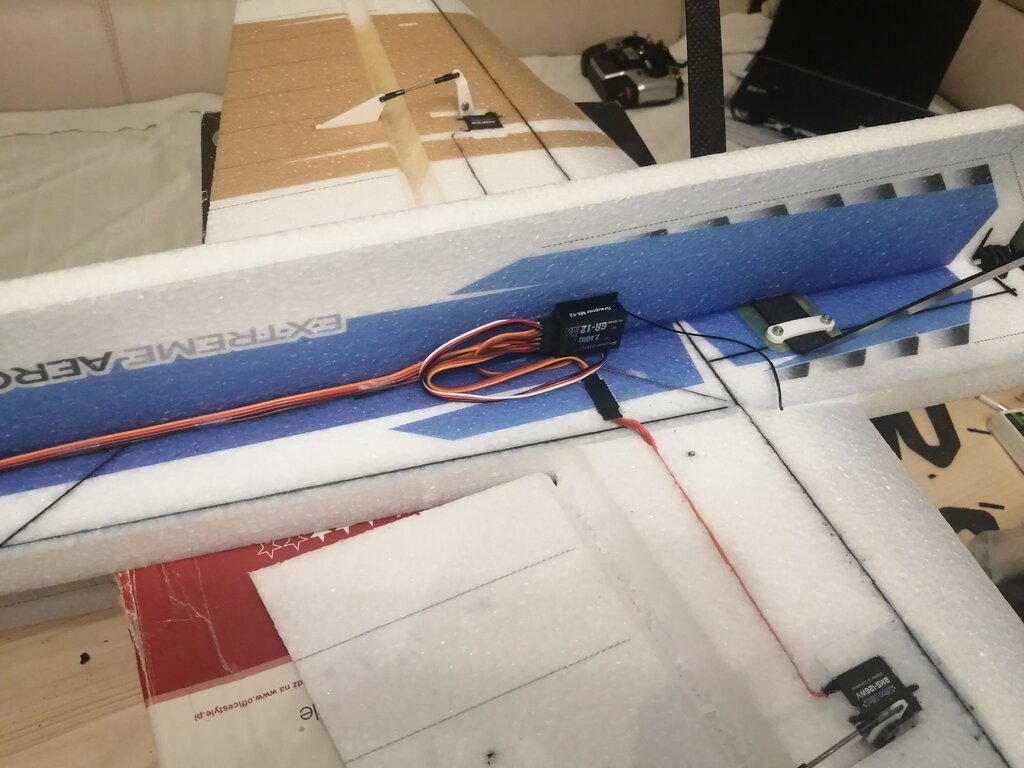 Przejściowa przy regulator ze jest na test bo nie mam teraz złącza do przy lutowania i muszę kupić. Co do akumulatora to wiem że są trochę duże, ale takich mam 5 i chcialbym latać na nich, ale jeżeli model będzie latał ociążale to kupię pakiety 1300mah. Kołpak kupiłem i założyłem dla lepszego wyglądu, ale jeśli model wyjdzie więcej niż te około 800 gram to go zdejmę. Serwa które kupiłem mają taki kształt, że z dokładnym powiększeniem orczyka (dawanym przez producenta) nie mogą się wychylić więcej niż 100% (nie da rady powiększyć wychyleń np. do 120%, chyba że się wypiłuję lekkie wgłębienie w przedłużce orczyka). Muszę znaleźć wychylenia zalecane przez producenta. Stworzę sobie 3 fazy lotu: -do startu i ładowania z małymi wychyleniami, -z średnimi wychyleniami, -z maksymalnym wychyleniami zalecającymi przez producenta. Ja zamontowałem regulator na dole i pakiet i odbiornik również tak raczej będzie. Akumulator zrobię chyba przechodzący przez kadłub. Wizualnie mi też się podoba i mam taką nadzieję, że na tych pakietach też będzie dobrze latać. W internecie widziałem jak ludzie latali tymi modelami na 2200 i nie wydawał się model w locie ociążaly. Może trzeba będzie latać na wyższych obrotach, bo waga będzie wyższa. Założyłem te kapcie na koła, ale na razie jak będę startował z ziemi to je raczej zdejmę. Jak będę ładował do ręki to może wtedy je założę, ponieważ mi się podoba ich wygląd. Załączam kilka zdjęć: -