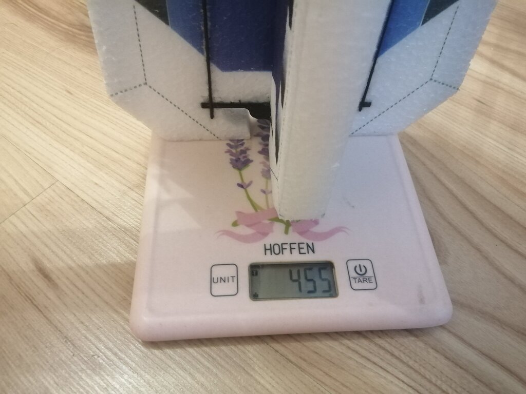Dzisiaj zważyłem model i masa samolotu mnie trochę przeraziła (890gram). Model wyważyłem bez doważania, samym układem pakietu. Zobaczę jak model poleci, jeśli będzie latał opornie, to tak jak mówiłem zamontuję 1300mah. Waga tak duża oprócz dużego pakietu jest spowodowana tym, że chciałem skleić model wytrzymale, i model ma w sobie 2 i pół opakowania kleju, czyli około 50 gram. Na pakiecie 1300mah ważyłby około 840, tak mi się wydaję. Porównując wielkościowo do mojego Fun Cuba do dużej różnicy nie ma. W locie na pewno będzie różnica. Moje odczucia, kilka fotek i nagranie (bez tego oblot się nie liczy) wstawię po oblocie. A to fotki z fun cubem: -