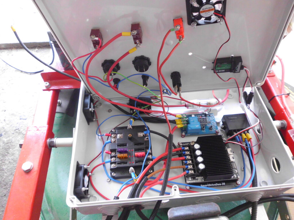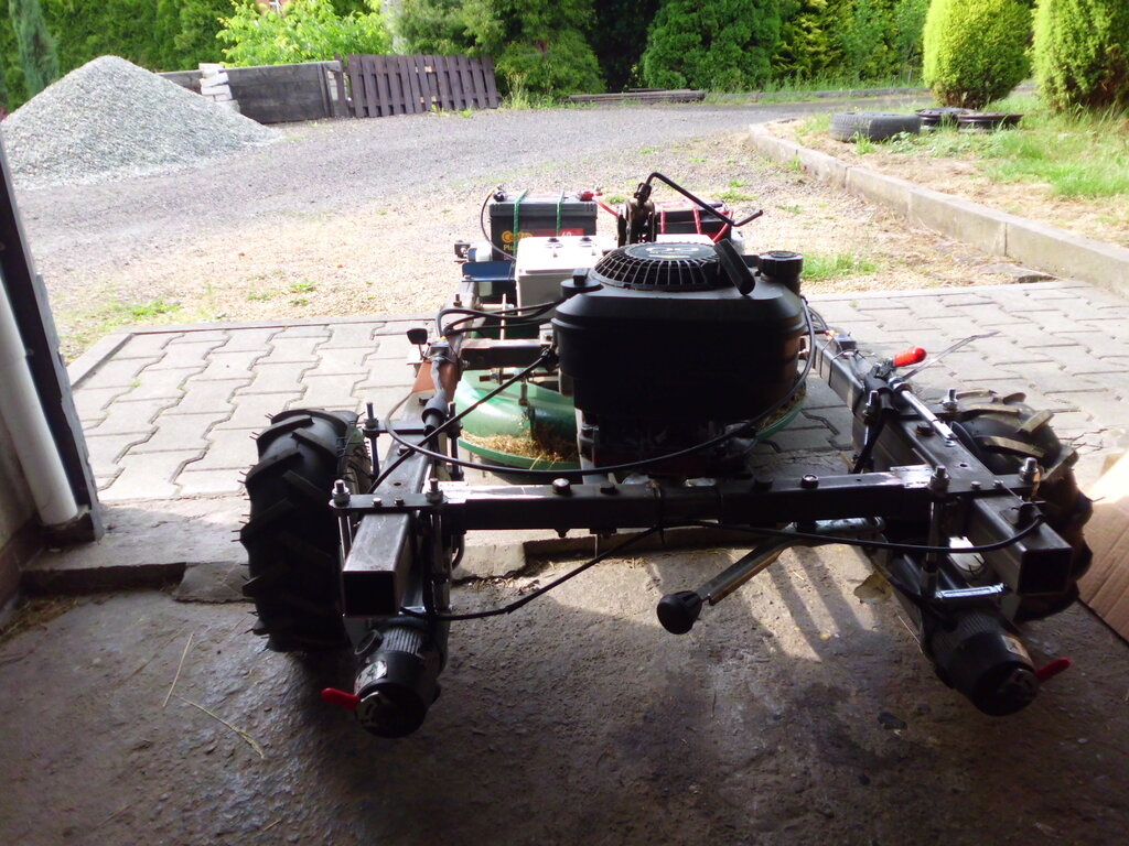 To będzie kosiarka przez duże K. 120-130 kg z jednonożowym kosiskiem 70 cm. Tak że 24v musi być. Większość konstruktorów stosuje regulator obrotów Sabertooth Dual 25A ale cenowo za drogi.