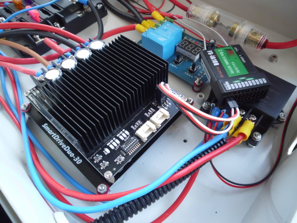Mam zestaw FlySky FS-i6X 10CH + odbiornik FS-iA10B + Cytron SmartDriveDuo MDDS30 - dwukanałowy sterownik silników DC - 7V-35V/30A sterujące dwoma silnikami 24V DC po 300W w kosiarce. Przy słabym już napięciu w akumulatorach kosiarka jedzie jakby na jałowym biegu, nawet gdy nie ruszam aparaturą i nawet po wyłączeniu nadajnika. Muszę wyłączać wtedy całą skrzynkę sterowniczą. Przy świeżo naładowanych akumulatorach nie ma takiego problemu. Jaka może być przyczyna?