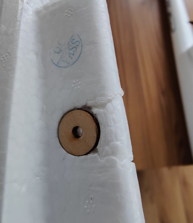 Hej, wczoraj miałem swój pierwszy oblot tego modelu. Jak to bywa, nie obeszło się bez kraks. Rozerwały się styropianowe łączniki z kadłubem. Skleiłem je tak jak na zdjęciu klejem CA, jedno zerwanie średnim, inne mocnym (chciałem poznać różnice). Prysnąłem też przyspieszaczem, rozległ się dźwięk, zapach i dym, więc coś tam się zadziało.