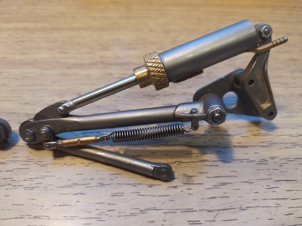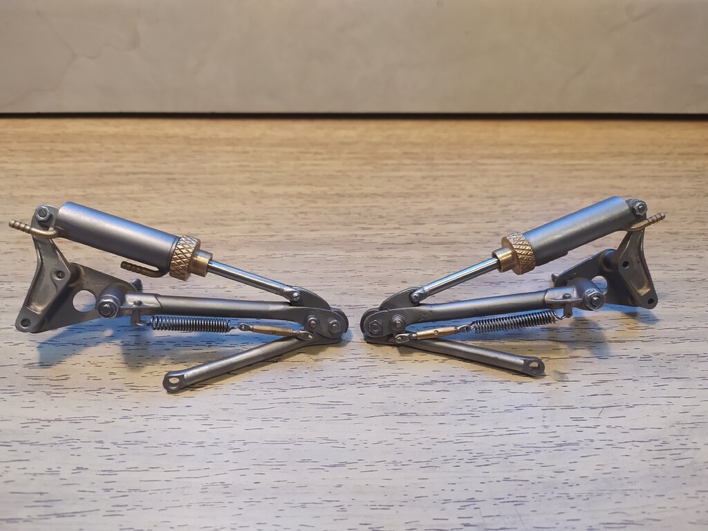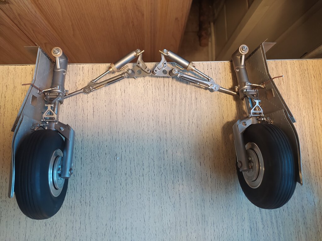 Oczywiście że chowane. Siłowniki już zrobiłem, są na zdjęciu. Działają. W podwoziu głównym zastosowane zamki, jak w oryginale. Jeszcze tylko zbiornik z zaworkiem i próby całości. Zależy mi na niesymetrycznym powolnym otwarciu dla tego z jednej strony zrobiłem przekrój otworka 0.8, a z drugiej 1 mm. Niebawem zepnę to w człość i zobaczymy Widziałem wiele modeli i żadko podobało mi się jak to podwozie się składa, dla tego chcę wypróbować takie rozwiązanie. Główne chodzi o realizm. Jak się przyjrzeć samolotom to podwozie składa się powoli i żadko symetryczne.
