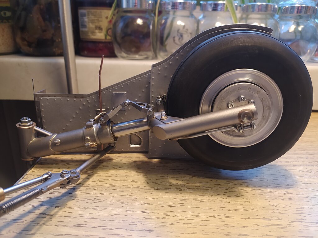 Staram się żeby wyszło jak najlżej. Wszystkie elementy z nierdzewki i większość w podwoziu ma ściankę 0.5mm. jak wyjdzie się okaże. Chciałbym nie przekroczyć 4.5 kg. Takie założenie, ale różnie bywa, zwłaszcza w makietach Jak pisałem model będzie w skali 1:6 co daje ok 160cm rozpiętości. To nie będzie wielki samolot -