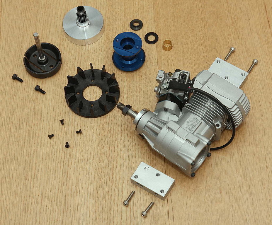 Podwójna wręga silnikowa? Silnik przykręcany do większej, a ta przykręcana do mniejszej na domku. W razie potrzeby domek trochę skrócić i oryginalną wręgę przesunąć do tyłu by piasta śmigła odpowiednio wystawała z maski. -