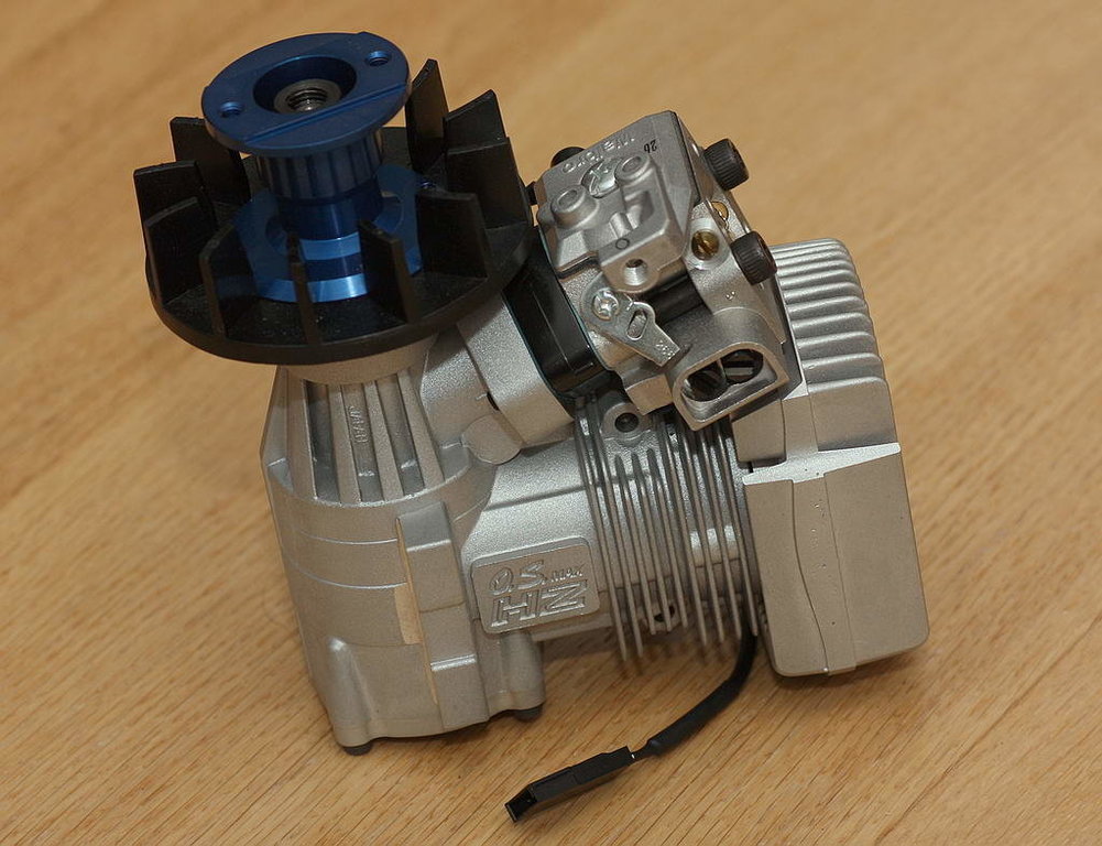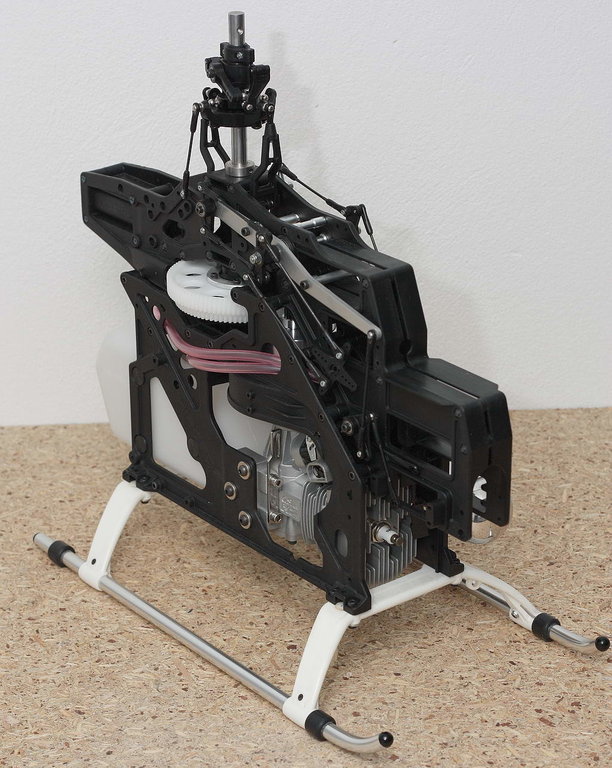 Dzięki. Tym razem nie będzie o regulacji mechaniki. Dołączane do makiety Bella podwozie wygląda ... co najmniej groteskowo. Na zrobienie w pełni makietowych goleni nie bardzo mam czas (a i chęci nie za wiele) więc zdecydowałem się na zakup zestawu goleni z Hobby Kinga. Myślę, że po prostym dopasowaniu będzie się zdecydowanie lepiej prezentowało niż oryginalne druciaki. /Dwa tygodnie później/ Przyszło podwozie z HK. Wygląda nieźle. Kupiłem też elektroniczny wyłącznik zapłonu: Pakiet główny: Pakiet zapłonowy: Wentylatory, które planuję wstawić w pylony. Ich zadaniem będzie chłodzenie wnętrza: Na montaż oczekuje moduł zapłonowy: Ogarnąłem okablowanie. Przewody w miarę potrzeby poskracane i ułożone: Powoli montuję ostatnie graty w mechanice. Na swoje miejsce trafiły oba pakiety, odbiornik i i uchwyt do anten: Pakiety jeszcze nie podłączone. Zamontowałem moduł zapłonowy. Miał być jak najdalej od pozostałej elektroniki. Znalazł swoje miejsce jak na zdjęciu poniżej: Na razie mam nieogarnięte jeszcze mocowanie killswitcha, okablowanie pakietów i wyłączniki zasilania. Hirobo robi całkiem zgrabny uchwyt pod wyłączniki zasilania avioniki i zapłonu: Oznacza to wprawdzie kolejne zakupy, ale w makiecie zrobię otwierane drzwi i będzie zarówno estetycznie, jak i z łatwym dostępem. Zrobiłem także sterowanie przepustnicą: Zostało wykonane zgodnie z instrukcją, ale mam jednak bardzo poważne wątpliwości co do sposobu przeniesienia napędu przepustnicy i działania governora. O tym opowiem w najbliższym filmiku. Model w zasadzie jest przygotowany do oblotu mechaniki. Mam nadzieję jutro pierwszy raz odpalić silnik. Nazbierało się trochę materiałów z ostatnich regulacji jeszcze na stole.Poniżej umieszczam film przedstawiający sterowanie przepustnicą. Tym razem trochę dywagacji na temat współpracy silnika OS GT15HZ z governorem Futaba GY-701 oraz ustawianie krzywej gazu dla trybu lotu normal (lub inaczej hovering) Króciutko o zastosowaniu elektronicznego wyłącznika zapłonu - kill switcha. W poniższym filmie przedstawiam ustawienie w governorze zakresu ruchu serwa gazu i programowanie położenia drążka gazu, powyżej którego następuje włączenie governora. Kolejna porcja materiałów. Na poniższym filmie pokazuję ustawienia governora w nadajniku Futaba T8FG: W ostatnim odcinku kręconym w mojej modelarskiej piwnicy ustawiam tryb autorotacji "HOLD". Na początku pewnie się nie przyda, ale moim zdaniem "NORMAL" i "HOLD" powinny być zaprogramowane dla każdego modelu śmigłowca, a pozostałe "IDLE n" można programować i uaktywniać kolejno w razie potrzeb. Wreszcie udało mi się wybrać na lotnisko i pierwszy raz uruchomić silnik. Niestety nie doszło do oblotu modelu. Potwierdziły się moje obawy co do sterowania przepustnicą. Gdy kąt obrotu orczyka serwa gazu równy jest kątowi obrotu osi przepustnicy uzyskuje się około 1630 obr/min na wirniku głównym przy krzywej gazu na poziomie 18%. Podczas docierania silnika zgodnie z instrukcją OS potrzebuję około 1400 obr/min przy przekładni głównej 8,6:1. Myślę, że rozwiązaniem problemu będzie uzyskanie mechanicznego "EXPO" na sterowaniu przepustnicy. Po powrocie z lotniska wykonałem niezbędne zmiany w sterowaniu przepustnicą. Efekty chyba będą ciekawe. Wreszcie nadszedł ten moment. W ostatnią sobotę był oblot mechaniki. Spalinowymi, dużymi modelami heli nie latałem co najmniej 6 lat. Nogi miałem jak z waty, ręce drżały - przez co sterowanie było trochę "nadaktywne", ale udało się. Wprawdzie miałem wpierw odświeżyć odruchy na modelu treningowym (Frenzy TZ 90 v.2) ale jakoś nie było na to czasu. Poniżej film z tego wydarzenia: Teraz pozostaje regulacja składu mieszanki, korekty krzywej gazu i docieranie silnika na wolnych obrotach (w trybie normal, około 1400 obr/min na wirniku głównym). Muszę tak wypalić 3 litry benzyny. Pewnie zajmie mi to "trochę" czasu. Teraz bez problemu na zbiorniku (480 ml) mogę się bujać pół godziny, a mieszanka i tak jest za bogata. Po zmianie sposobu sterowania przepustnicą governor podjął prawidłową pracę. Dochodząc do zaprogramowanych 1400 obr/min przestrzelił tylko o 35 obr/min przy niewyregulowanej mieszance.