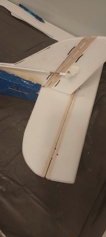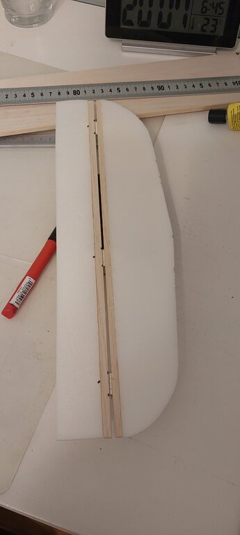Dobra zaczynam naprawę postanowiłem wczoraj zrobić ster wysokości a jutro wyczyścić samolot ze starego i tak go wkleić. Więc jako wspomniałem zabrałem się za wycięcie elementów z depronu Później zabrałem się za wycięcie elementów z balsy będą one łączyć ze sobą nieruchomą część steru i ruchomą część steru pomiędzy tymi dwoma balsami dałem 3 zawiasy jeden przesunięty ( ten na środku) w prawo bym mógł wbić tam później popychacz Po wklejenjeniu zawiasu wziąłem się za zrobienie lotki więc tak jak na zdjęciu musiałem już tylko doczepić kawałek depronu i koniec A to efekt po wklejeniu. na bokach pozostały nie równości więc musiałem go trochę przetrzec po bokach A to efekt końcowy ster gotowy