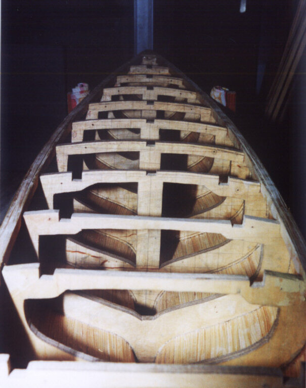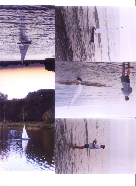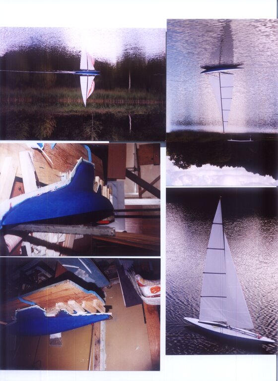 Dawno temu popełniłem jacht RC. Powstał na podstawie planów książki Mieczysława Plucińskiego "Pływające modele żaglowe". Pierwsza wersja miała poszycie słomkowe z sosny na sklejkowych wręgach, pokład klepka. Balast ze śrutu ołowianego. KLW - 1.9 m, wysokość masztu - 2m. Grot, fok oraz spinaker - stawiany i zrzucany na wodzie. Niestety pierwsza wersja zgodna z dokumentacją posiadała relatywnie małą płetwę sterową za ostrogą (na przedłużeniu balastu) i w przechyłach traciła sterowność. Wersja druga poprawiona poprzez likwidację ostrogi oraz dołożenie długiej częściowo zrównoważonej płetwy - sterowność pojawiła się, natomiast odezwała się słabość powłoki lakierniczej : po godzinnym pływaniu puchły listewki poszycia. Powstałą trzecia wersja : kadłub, ponieważ nie rokował został przeznaczony na kopyto - sporządzono na nim formę oraz wylaminowano nowy super lekki i super wytrzymały kadłub ze szkła węgla i kewlaru. Napęd śrubowy - awaryjny - istniejący w dwóch wersjach został zarzucony, zostały tylko żagle. I ta wersja jest ostateczna. kilka fotek : tworzymy formę: a tak pływa :