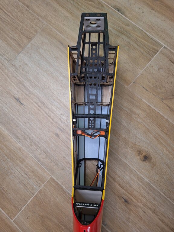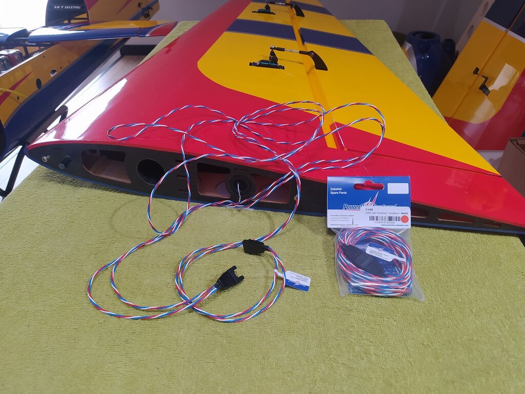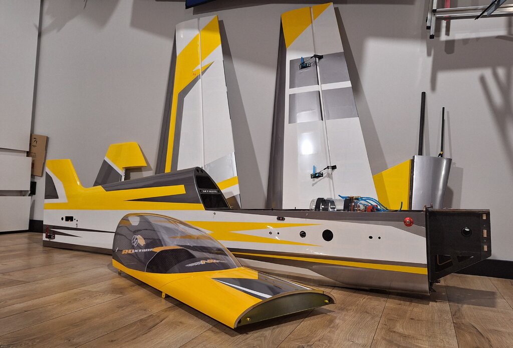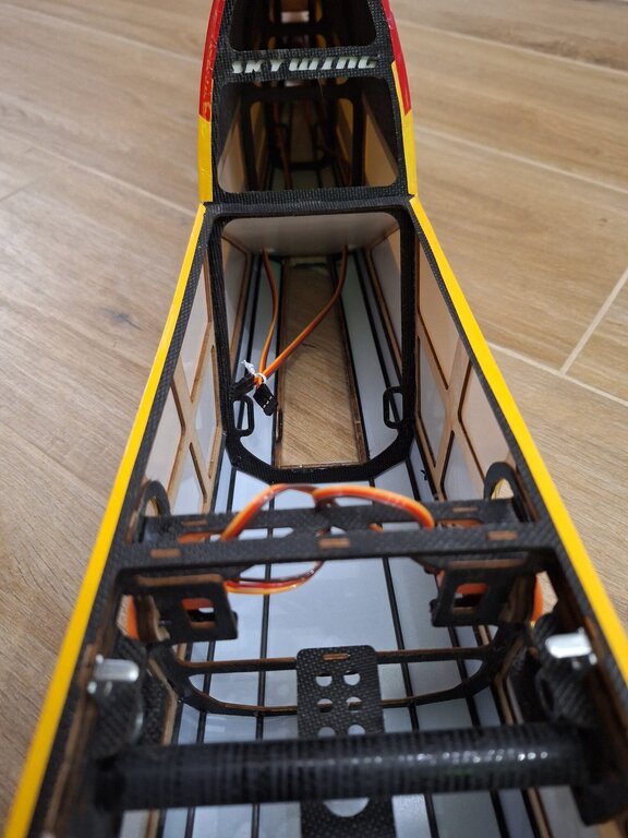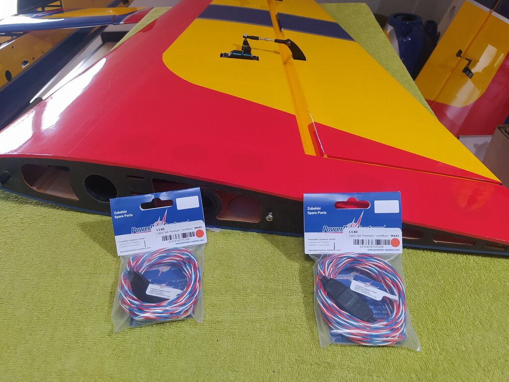 Po chwili czasu model został wyposażony w: Silniki, regulator oraz śmigło: Zestaw AM480 900 kV Combo od T-Motor Fixed Wing Serwa: THS921B od Theta Servos Baterie: 2200 mAh 60C od RacePow Odbiornik: PBR 9D od PowerBox-Systems GmbH Obsługiwany przez nadajnik: ATOM od PowerBox-Systems GmbH Poniżej kilka zdjęć -