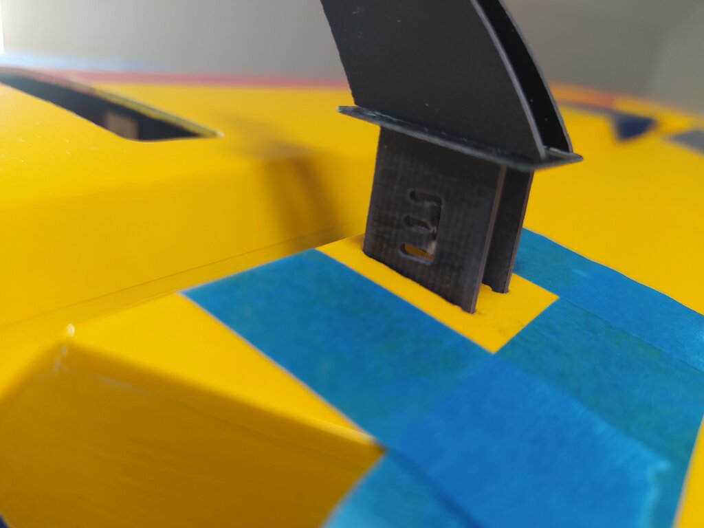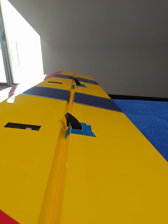 Zbudowaliśmy i złożyliśmy kilkanaście modeli powyżej 2.6 m i nie widzimy różnicy przy wycięciu tej folii pod dźwignie. Najważniejsza zasada przy wklejaniu jest to, że trzeba najpierw zalać frezowane rowki pod dziwgnie bardzo rzadką żywicą, a następnie rozrobić ja z aerosilem bądź mikrobalonem i ponownie wcisnąć w otwory, aż wypłynie. Taki sposób wklejenia nigdy nie zawiódł nas w modelach IMAC i Freestyle. -