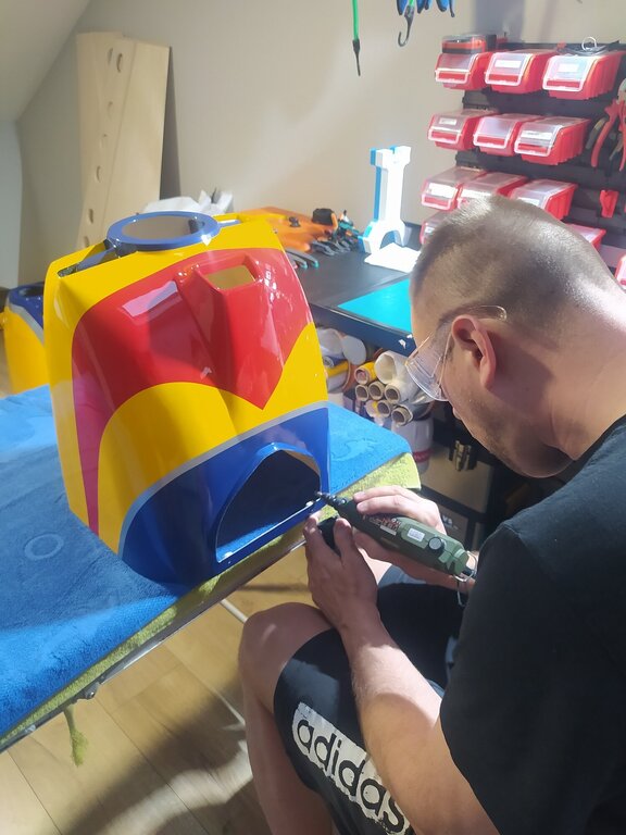 No a dzisiaj przedstawiamy post z kilkoma sztuczkami, które zawsze robimy w naszych modelach do 3D i nie tylko Więc: 1. Wykonanie otworów wylotowych w owiewkach - Dlaczego to robimy? Zdarzyło Wam się latać na mokrej, świeżo skoszonej trawie, a może jeszcze występowała mokra ziemia ? No właśnie.. Bardzo często się nie sprawdza się wtedy owiewek, a w środku może powstać niezłe "bagno" (ziemia zmieszana z trawą). 2. Lakierowanie łączeń foli - Niezbędna rzecz, którą wykonujemy przy modelach latających zwłaszcza z dymem! Wszystkie łączenia folii występujące na poziomach, kadłubie czy skrzydłach wyklejamy taśmą, a następnie kładziemy warstwę lakieru. Co nam to daje ? Dzięki temu żaden brud, ani olej z dymu nie dostanie się pod folie przez co można bez problemu wyczyścić model - nie musimy tutaj dodawać, że bardzo trudno jest ponownie przyprasować folię pod którą dostał się brud czy olej. 3. Przeklejenie owiewek podwozia - W tym przypadku szlifujemy podwozie do chropowatej struktury, odłuszczamy, w pierwszej kolejności kładziemy rzadką żywicę, a do docelowego wklejenia używamy żywicy L285 z mikrobalonem. Poniżej kilka zdjęć. Jeżeli potrzebujesz więcej informacji to dawaj znać - odpowiemy! -