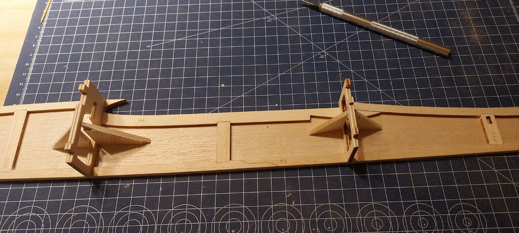 Kolejne małe postępy w budowie: 1. Wklejone wzmocnienia kadłuba po obu stronach. 2. Przygotowane i wklejone dwie główne wręgi. 3. Wklejone mocowanie śruby pod płat. Całość powoli zaczyna nabierać kształtu Może trochę na to późno, ale nasunęło mi się pytanie: instrukcja zaleca mocowanie poszczególnych elementów na cyjano-akryl i wszystko świetnie fantastycznie, ale nigdy nie miałem serca do tego wynalazku i ciężko mi się z nim pracuje. Po prostu brakuje mi czasu na dokładne przyłożenie elementów, a wszelkie poprawki są z oczywistych względów niemożliwe. Zamiast tego, stosuję stary dobry biały klej do drewna dający więcej swobody. Do brzegu- czy ktoś ma doświadczenie, jak taka podmiana wpływa na ogólną wytrzymałość konstrukcji? O ile w ogóle. Konsekwentnie, zastanawiam się, czy wykorzystanie kleju do drewna nie jest zauważalnie cięższe. Spodziewam się odpowiedzi: "jak kto woli- różnice są niezauważalne" ale zjada mnie ciekawość. Na koniec dodam tylko, że elementów wklejanych na epoxy, tam, gdzie wydaje mi się, że może mieć to znaczenie (jak łoże silnika) lub tam, gdzie jest to wygodne nie "podmieniam" i stosuję się do instrukcji.
