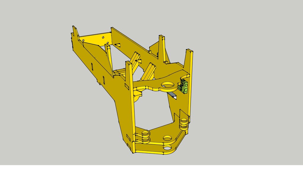 Wczoraj dużo napisałem ale mało pokazałem. Dziś pierwszy dowód, że coś tam się robi. Elementy żółte zaprojektowane tak by można było wyfrezować w aluminium. Natomiast zielone będą drukowane w 3D. -