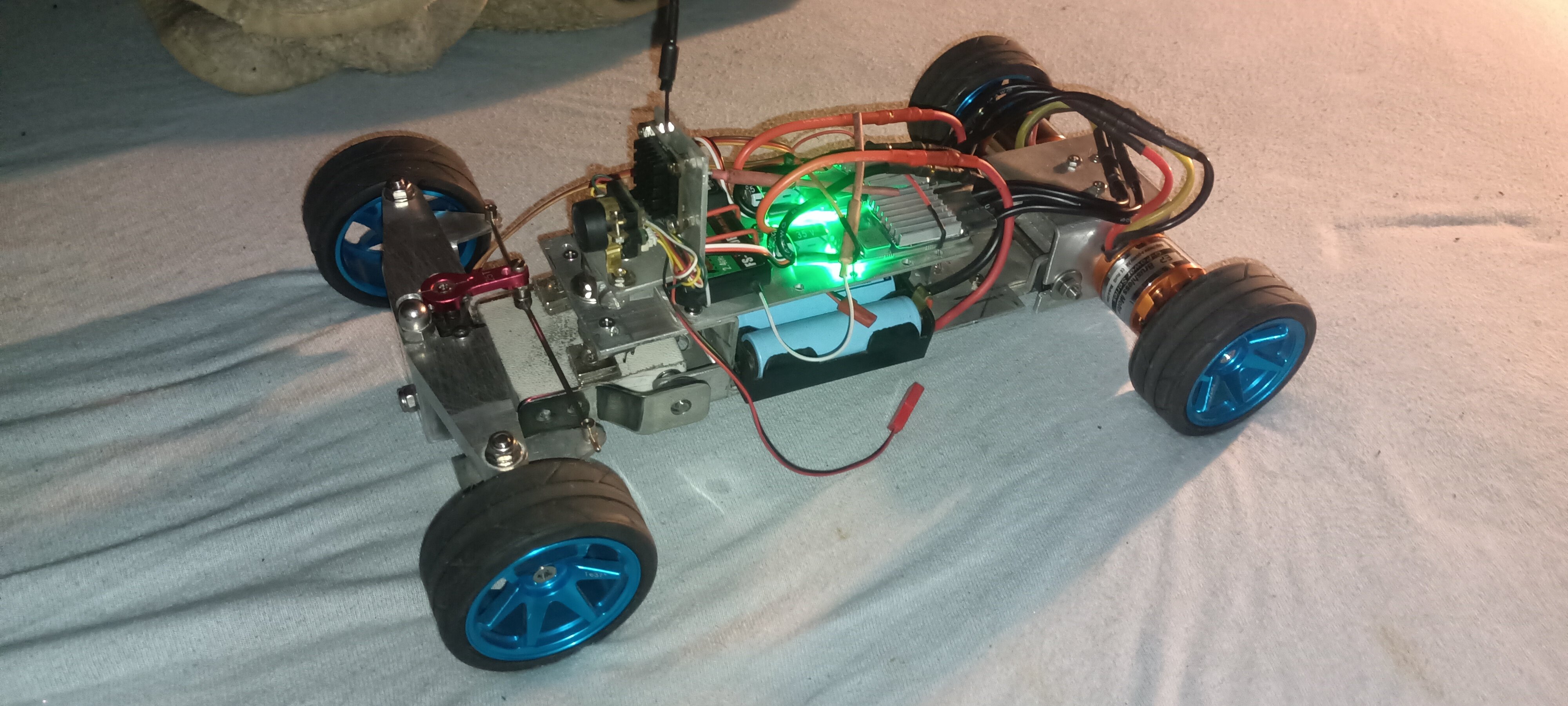 2. Na warsztacie mam coś takiego : Zainspirowałem się filmikiem z YOUTUBA. Jestem na etapie prób.Pierwsze jazdy wypadły bardzo blado. Do przodu silniki zrywają a do tyłu pracują gładko ale przyspieszenie jest niewielkie. To moje pierwsze doświadczenia z silnikami BLDC i jeszcze się uczę ale wiem że winne są ECS-y skonfigurowane do pracy ze śmigłem a nie dla pojazdu kołowego. Al podpowiada mi zakup ecs Am32 i samodzielnie je zaprogramować. Czy któryś z kolegów mógłby mi podpowiedzieć czy to dobry pomysł i na które parametry zwrócić uwagę by uzyskać duży moment obrotowy przy małych prędkości.Albo jakie fabryczne ecs-y sprawdziły by się w tym modelu. Zastosowane silniki to 2 D3536 1250kV a model ma niecały kilogram.