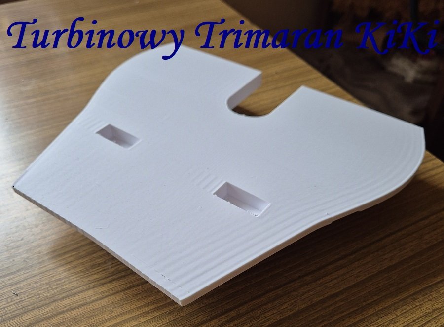 No cóż, nie jest to mój pierwszy model jachtu,katamarana i drugi trimarana. Mniejszy 380x330 lata jak szalony, a ten nie musi. Ten ma służyć do spokojnego pływania i jako ratowniczy dla innych modeli /sczególnie tych, którym świństwa wkręciły się w śrubę. Waga samego trimarana 400g/. Z pełnym wyposażeniem nie przekroczy 1kg. Aku LiPo 10,000mAh najcięższe 335g, reszta to lekkie drobiazgi. To jest mój autorski projekt, a rozwiązania w nim zawarte, dają wiele możliwości dopasowania zarówno napędu, jak i sterowania. Wybiorę najlepsze. Turbina testowo została prowizorycznie bez kontroli wlotu i wylotu zamontowana w modelu 2kg. Problem nie jest w wadze modelu, ale właściwym wykorzystaniu strumienia powietrza. Tamara sama projektuje i wykonuje swoje modele. Mają ponad 1m i ok 3kg. a prędkości jakie osiągają, dają podziw. Więc jestem spokojny. Pamiętam jak w dużym modelu jachtu żaglowego, krytykowano mnie za skrócenie do minimum balastu, bo się będzie przewracał. Zamontowany podwodny silnik nie tylko zrównoważył balast, ale jako znacznie cięższy zrównoważył stabilność i jacht się nie przewraca do dołu żaglem. Więc jastem bardzo spokojny o końcowy efekt. Na pewno będę publikowł postęp prac, aż do wypłynięcia na wodę. Wstępne próby w dużej wannie. 😉