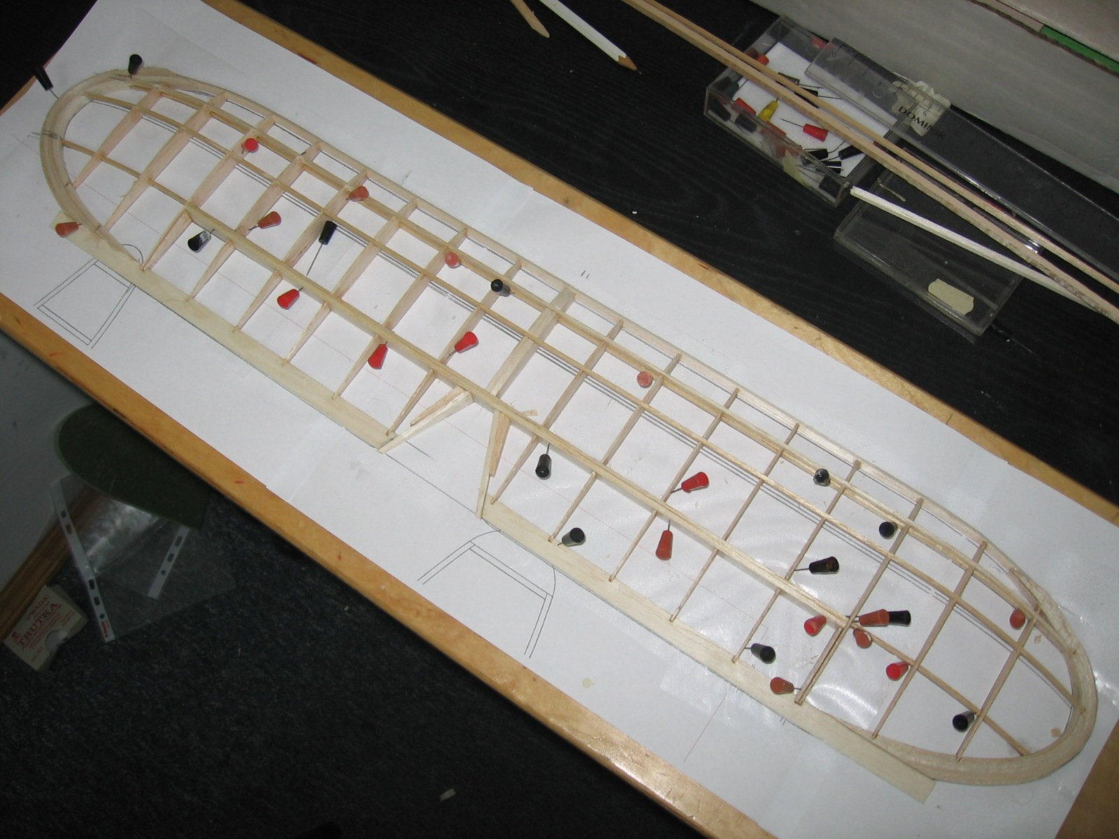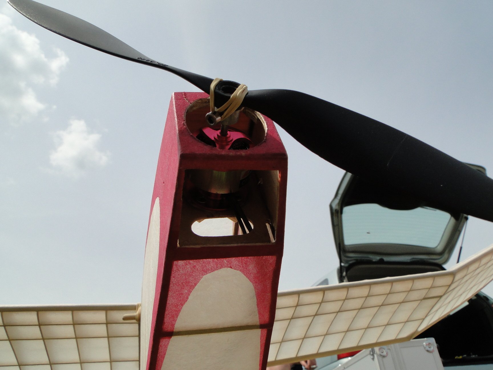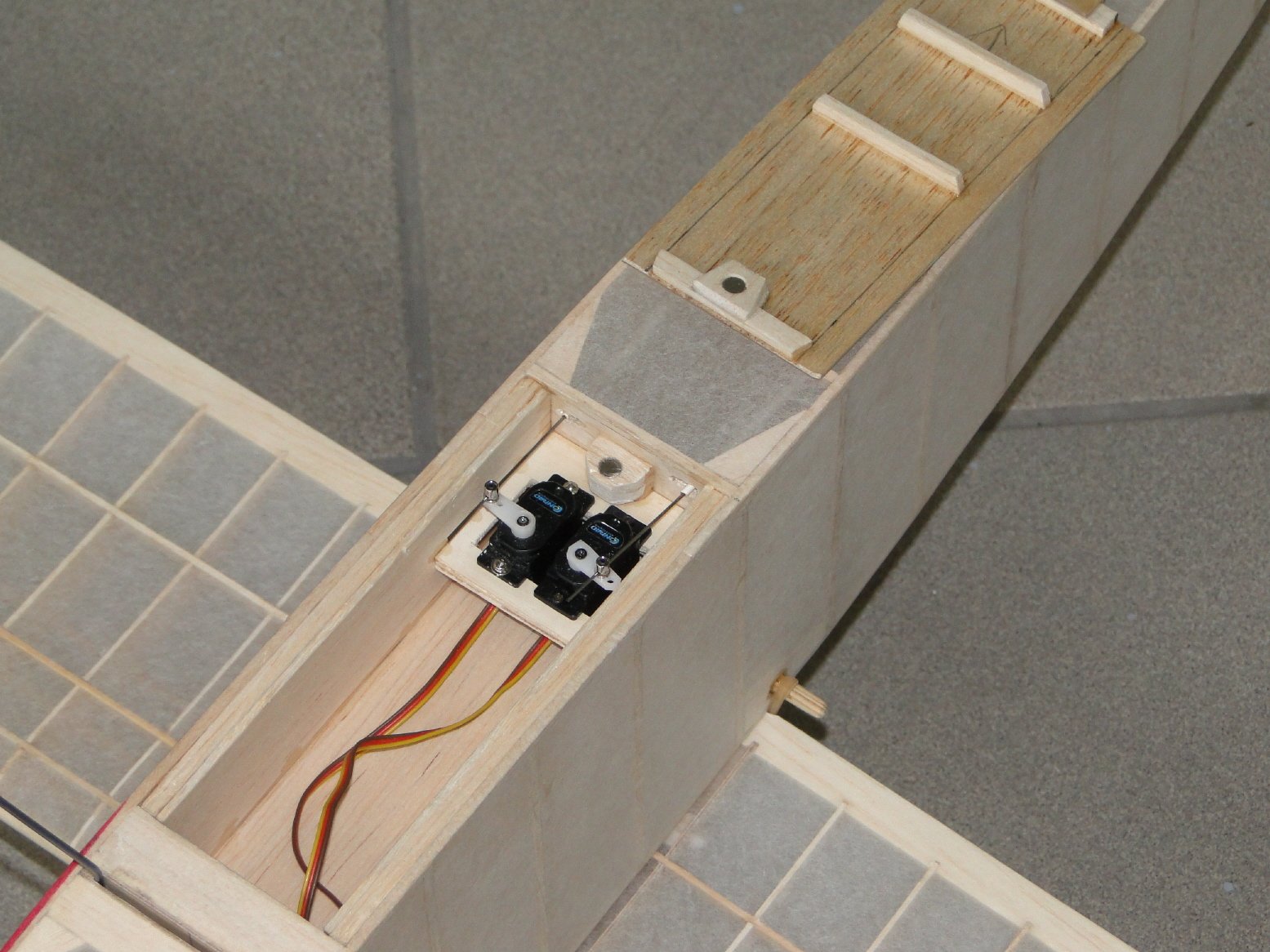Witam Wszystko OK, tylko końcówkę steru wysokości ułamiesz przy najbliższej okazji. Obetnij wzdłuż wystającej krawędzi i doklej z balsy ze słojami prostopadle do słoi w sterze.