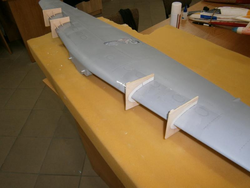 Co nieco do przodu. Dosyć charakterystyczne prowadnice strug na skrzydle. Przyklejone szalony i zalaminowane