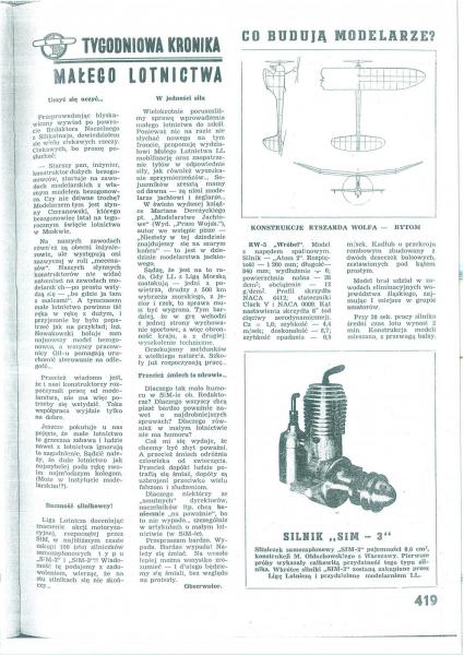 Skany pochodzą z nr SiM 19/1949, 27/1949, 52/1949, 36-37/1949. Natomiast artykuły o budowie silnika wklejone już są w wątku o budowie silnika kol. Ciachobanda (wątek niekontynuowany). -