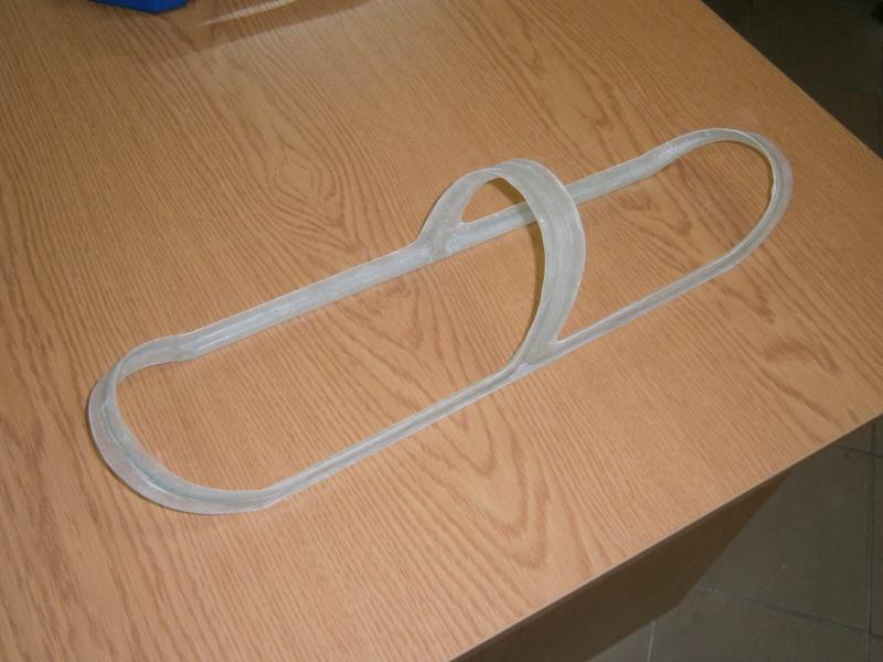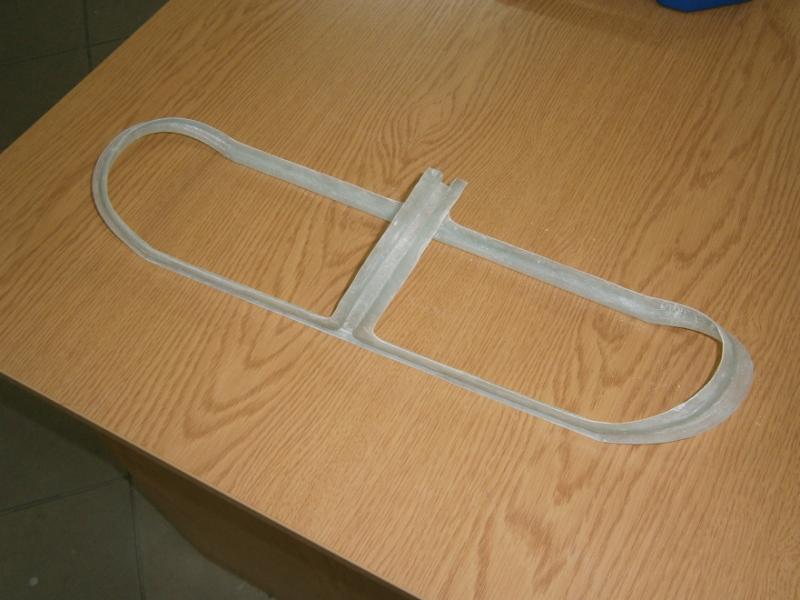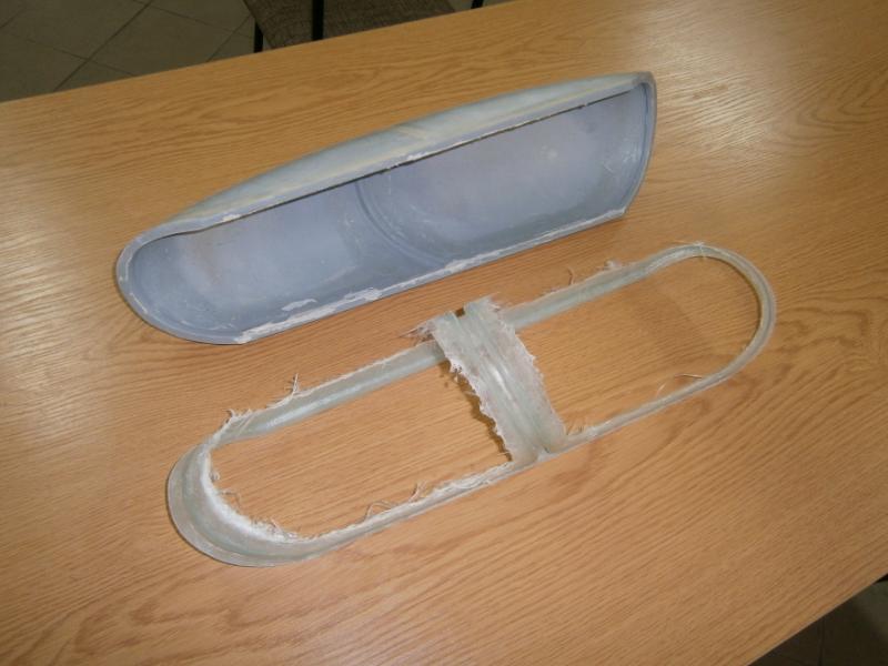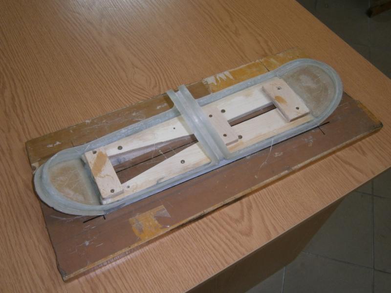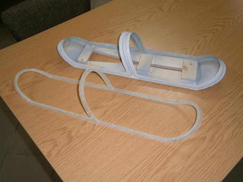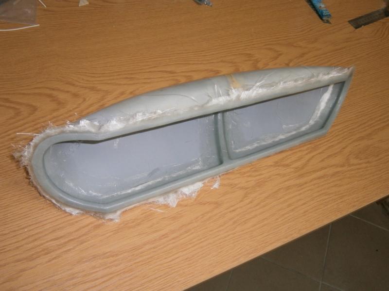 Czekam na razie na śrubki do przykręcenia łożysk w zawieszeniach klap, ale podłubałem z ramką kabiny . Po nawoskowaniu foremki wylaminowałem obcięcie naddatków po utwardzeniu gotowy laminacik i przymiarka do kadłuba