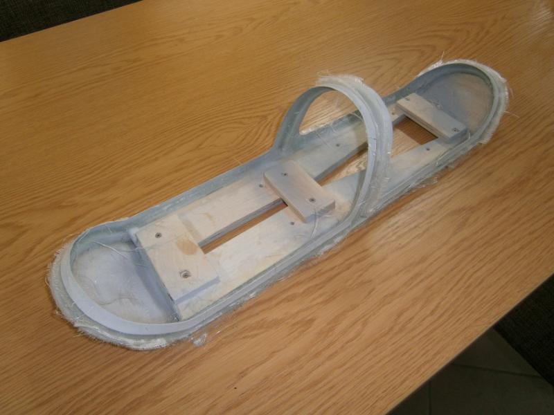 Drobiazgi, ale też trzeba je zrobić. Pokrywy serw lotek, sklejka 0,8mm + tkanina szklana 80g/m2. I jeszcze coś, ramka kabiny zrobiona była z balsy oblaminowanej tkaniną. Przemyślałem i robię formę na ramkę, może przyda się później . Na początek szpachlówka i podkład.