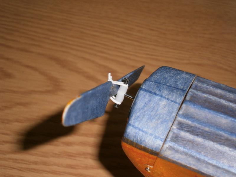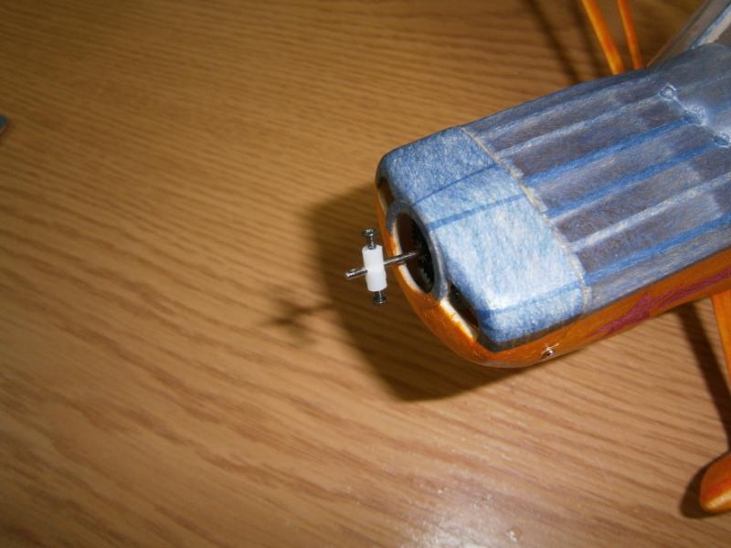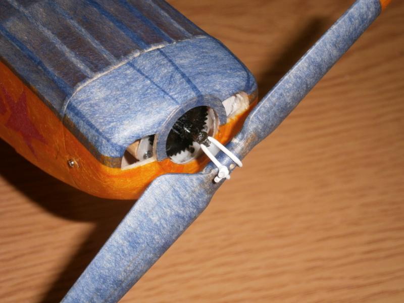 7. Muszę spróbować z cienkopisem. Mocowanie śmigła, o które prosił Jerzy. Wykorzystałem obciętą część napędu do lotek, tą tulejkę. Mam nadzieję, że fotki wyjaśniają. Do pełni szczęścia muszę pokombinować z kołpakiem .