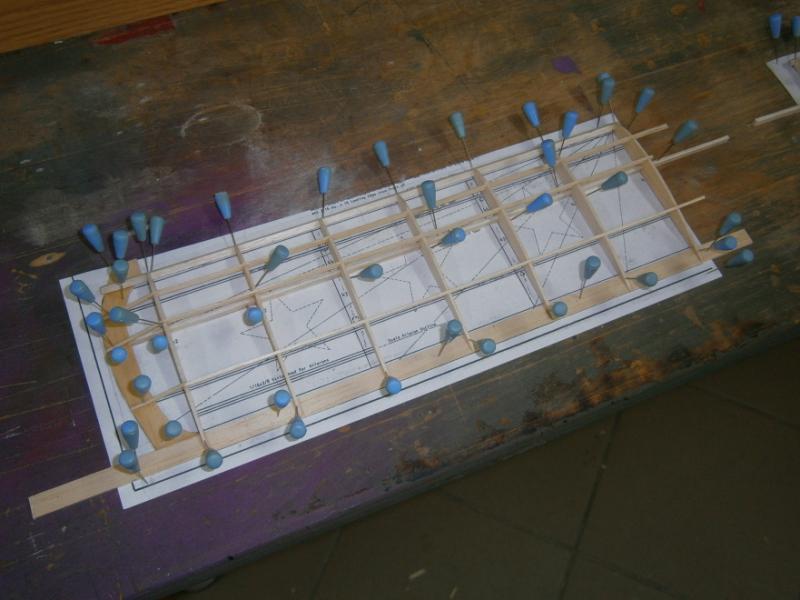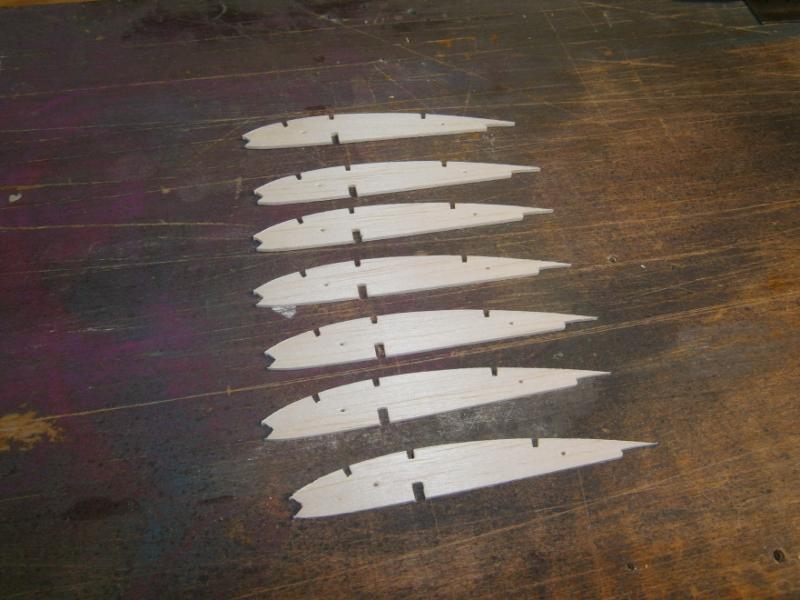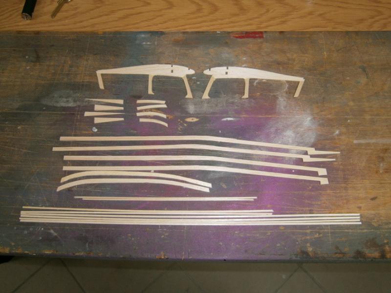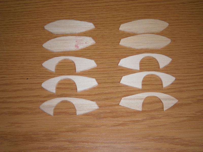 Chyba waga jest zepsuta zabrałem się za kadłub, próbowałem wycinać wręgi na podstawie szablonów z papieru, ale tak se ne da. Wyciąłem szablony ze sklejki 0,6mm i jest OK.