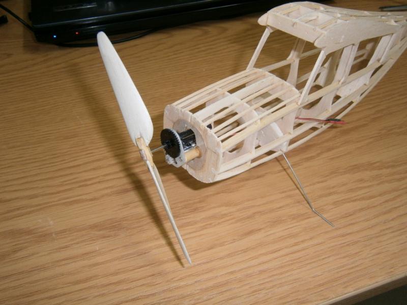 Witam Poprzeglądałem sobie trochę tematów i tak mnie wzięło. W tak zw. międzyczasie postanowiłem sobie mały modelik zbudować. Plany z netu, w oryginale rozpiętość 85 cm, model na uwięzi. Po zmniejszeniu "druknąłem" do rozpiętości 60 cm. Jako dawca bebechów do sterowania wykorzystałem uszkodzony mechanicznie śmigłowiec Walkera. Aparaturka na częstotliwość 35 MHz. Wszystko działa. na chwilę obecną waży to 25 g, ale kabelki się skróci i parę gramów odejdzie w oryginalnym napędzie było przełożenie 1:6 ( duże koło), po małych przeróbkach jest 1:3,33, wykorzystałem część z łożyskami wału i budowa właściwa, na początek skrzydełka, szablony do żeberek i parę żeberek