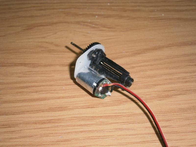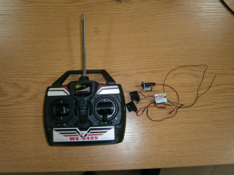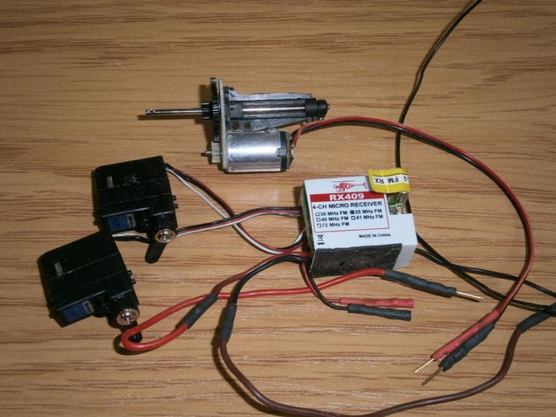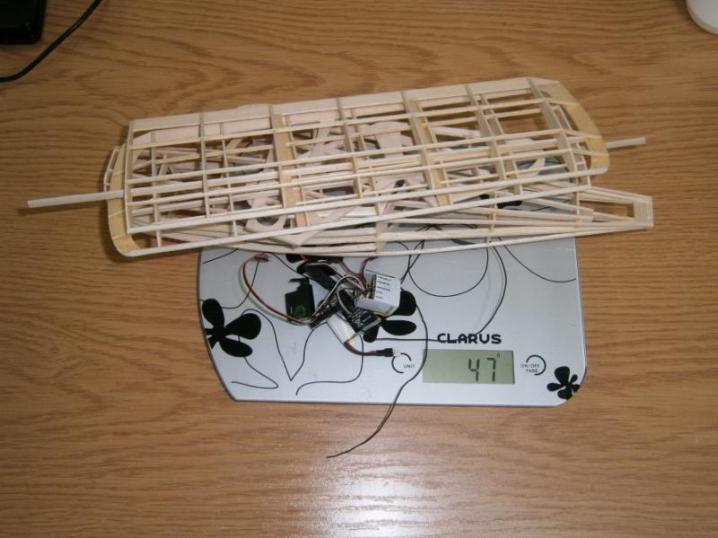 Serwa, odbiornik i silnik z przekładnią ważą 25 g. Trochę kabli odejdzie, to i waga będzie mniejsza. Aku na chwilę obecną nie mam. Mam nadzieję całość dobrze poniżej 100 g.