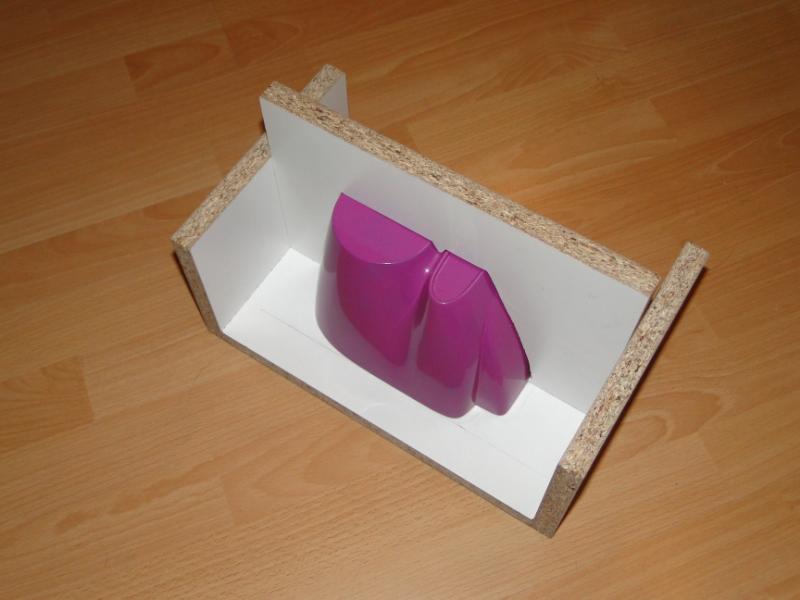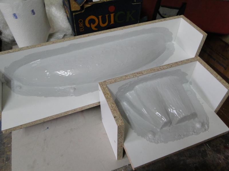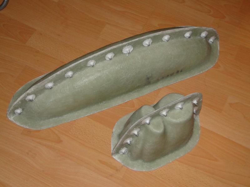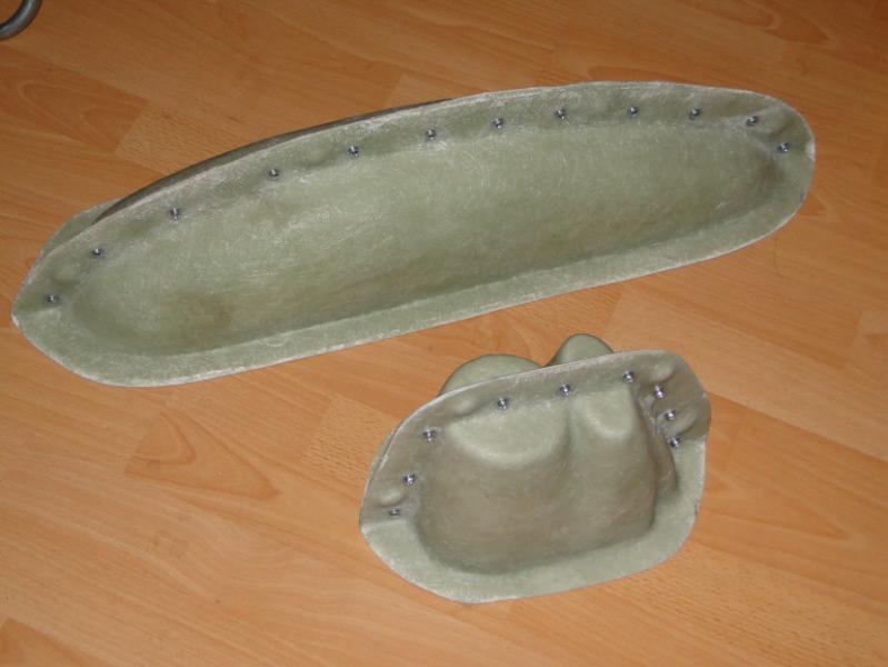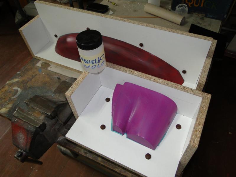 12. Człowiek uczy się całe życie . Pierwszy raz robię takie foremki, pod okiem doświadczonych kolegów. Jakieś mniejsze robiłem kiedyś, ale jednoczęściowe. Co do plastelinki i żelkotu, trochę niewielkich nierówności jest po założeniu, widać to po zdjęciu płyty rozdzielającej. Ale nie stanowi to problemu. Jak kopyto na maskę przetrzyma moje prace, spróbuję zrobić jeszcze jedną formę na tych samych "meblach", ale bez plasteliny. Uszczelnienie krawędzi płyt postaram się zrobić inną metodą, którą podpowiedział mi kolega. Ma być równiutko i gładko. Tylko, żeby mi się chciało .