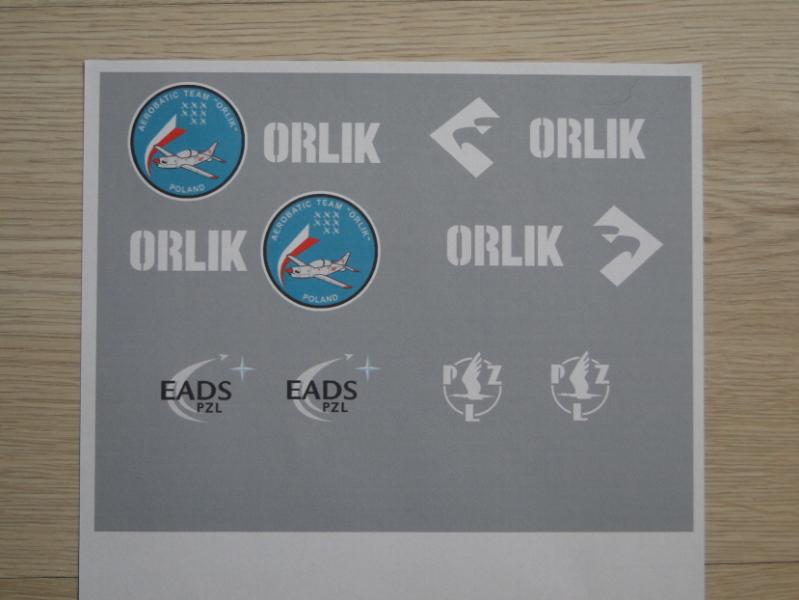 Witam Popracowałem troszkę w Corelu nad przygotowaniem oznaczeń Orlika i przygotowaniem do zrobienia kalkomanii. Będzie jeszcze więcej znaczków technicznych w żółtym kolorze, ale numer boczny samolotu będzie malowany farbą. Z drukarki nie uzyskam właściwego koloru.