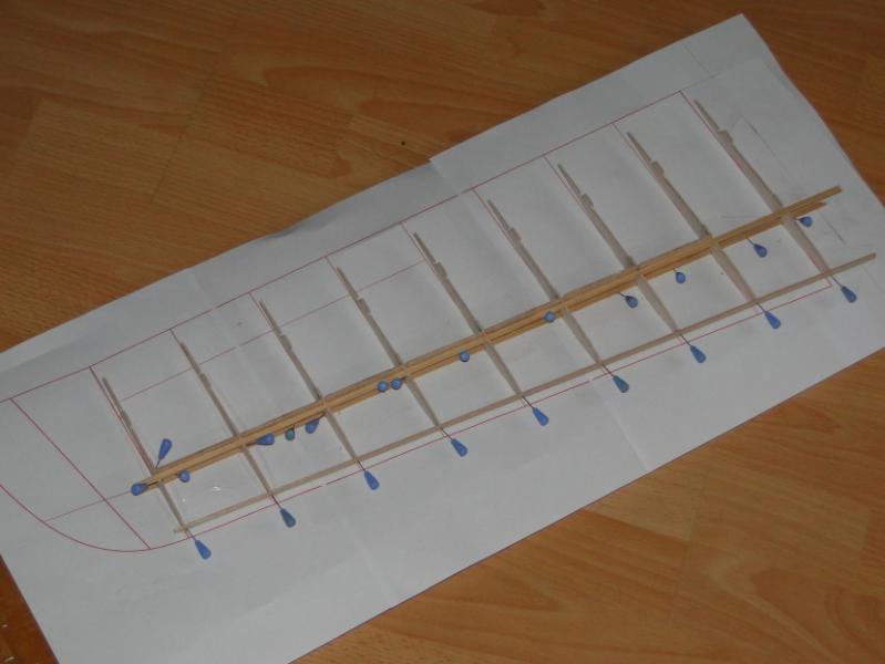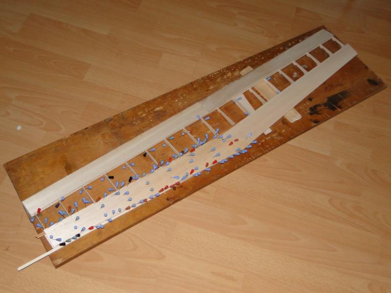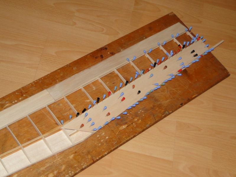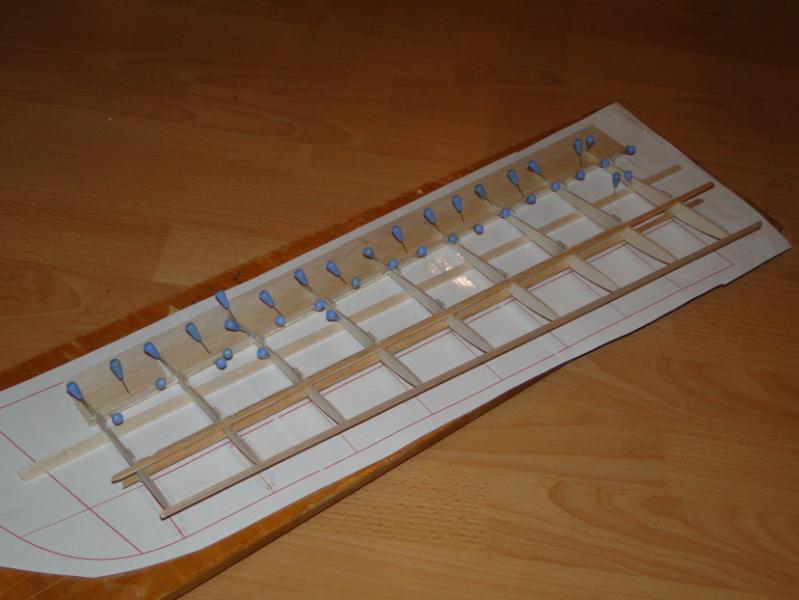 Witam Żadna sztuczka. Przede wszystkim żebra rozrysowane w jakimś programie graficznym (ja rysuję w CDR), żeby można było drukować nasze wypociny. Do przeniesienia potrzebna jest gruba folia, ja używam folię z okładek na dokumenty. Drukujemy nasze żeberka na folii i po wydrukowaniu odciskamy na klepkach balsowych. Czysto, bez żadnych śmierdzących środków chemicznych. Parę fotek z budowy