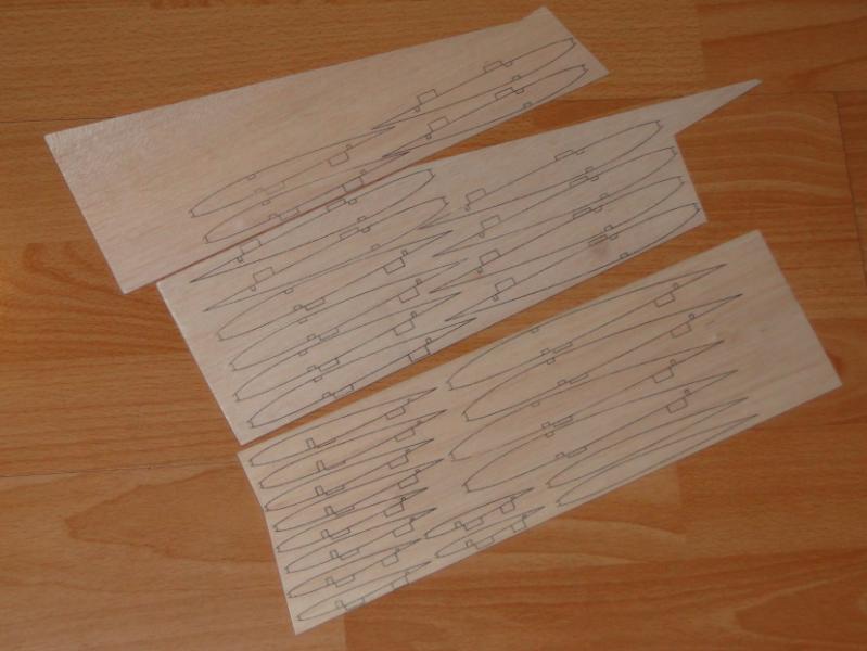 Witam Modelik na podstawie planów z netu. W oryginale szybowiec w układzie kaczki, ja robię elektroszybowiec. Na bazie tych samych planów Motylasty "stworzył" Gintera. Po rozrysowaniu, żeberka "przeniosłem" na balsę za pomocą drukarki atramentowej i folii
