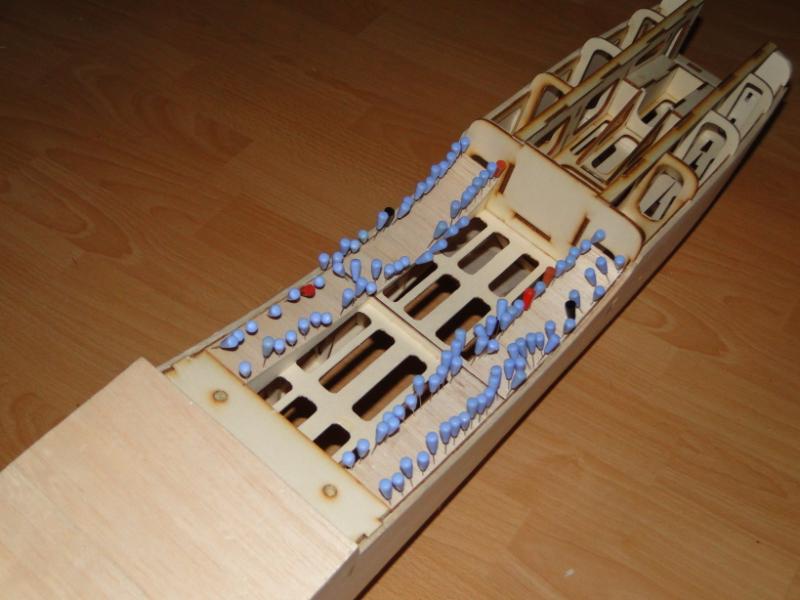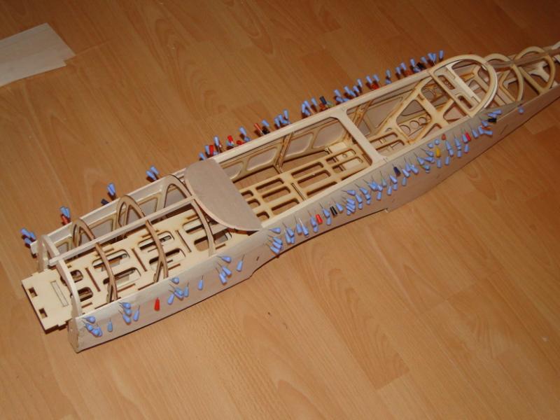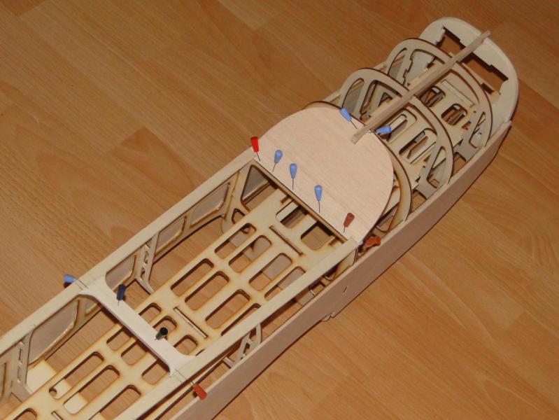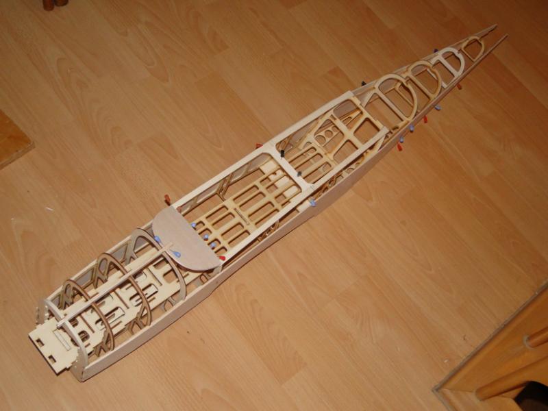 2. Witam Śledzę wątek od początku. Nieźle to to wygląda. Mam tylko takie małe ale..., łączenie klepek poszycia kadłuba na styk na wręgach. Trochę to nie po mojemu, osobiście łączyłbym na skos zachodzący na sąsiednie wręgi. Ale może się czepiam.