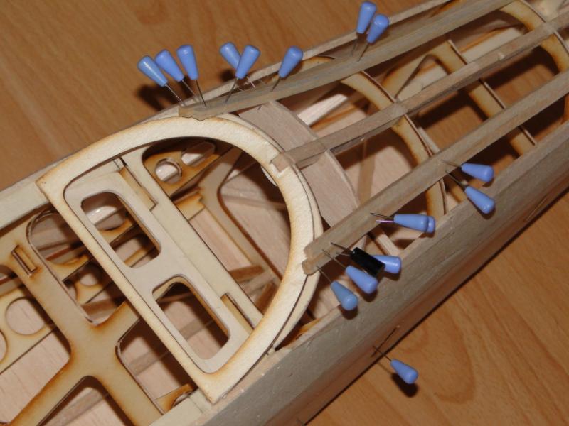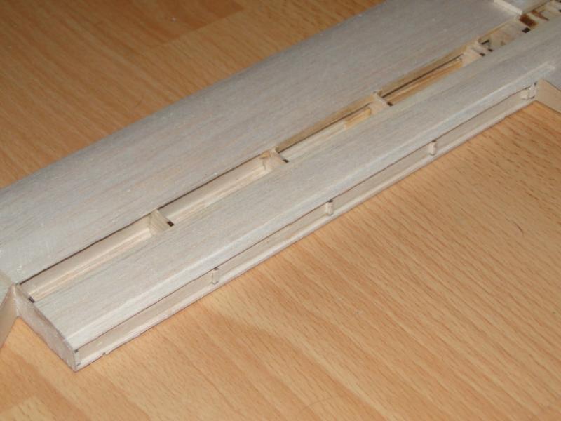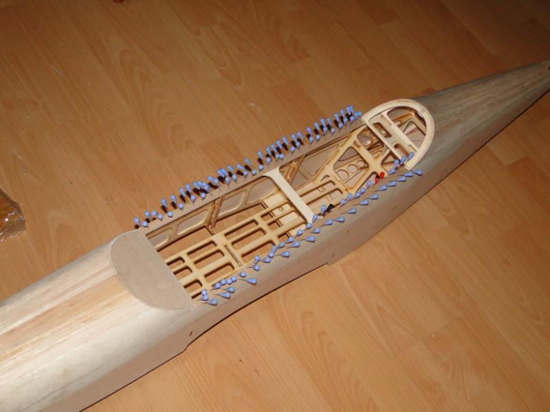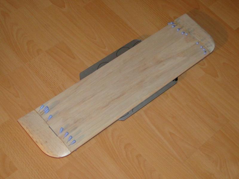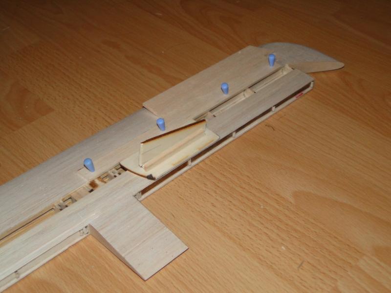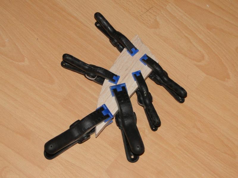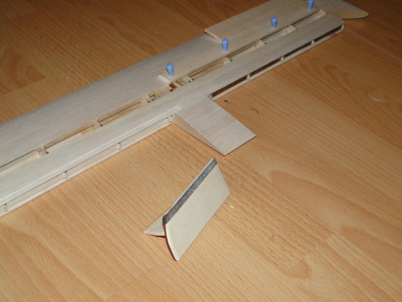 10. Witam Kadłub za skrzydłem jest załamany, więc wstępnie uformowałem boki za pomocą takiego "oprzyrządowania" Końcówka pionowego "kanapka" - środek sklejka 0,6mm i obustronnie balsa, klejone na Soudal D4