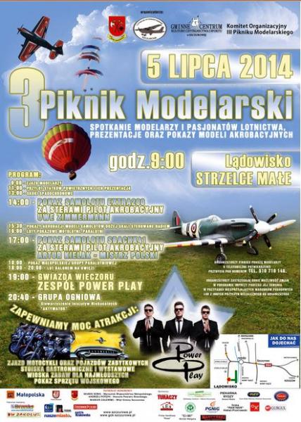 Już za niespełna dwa tygodnie, w sobotę 5 lipca, Lotnicze Stowarzyszenie Szczurowa organizuje III Piknik Modelarski na swoim lądowisku w Strzelcach Małych. Niedługo pojawią szczegółowe informację odnośnie imprezy ale już dziś wiadomo, że atrakcji lotniczych będzie sporo, związanych nie tylko z modelarstwem. Póki co, chciałem przekazać zaproszenie dla wszystkich modelarzy chętnych do wzięcia czynnego udziału w imprezie. Będzie można zaprezentować swoje modele zarówno statycznie jak i w locie. Wszystkich modelarzy i pilotów, którzy chcieliby skorzystać z takiej okazji i zaprezenotwać się publiczności, proszę ze względów organizacyjnych o odpowiadanie w tym temacie z informacją o rodzaju modelu jego wadze, rozpiętości oraz czy model będzie latać czy jedynie zostanie zaprezentowany statycznie. Jednoczęśnie przypominam, że korzystanie z pasa modelarskiego wiąże się z zaakceptowaniem i przestrzeganiem postanowień regulaminu. Każdy pilot lata na własne ryzyko i odpowiedzialność. Podczas imprezy latać będzie można jedynie zgodnie z dyspozycjami kierownika lotów, z którym będziemy posiadać ciągłą łączność radiową. Serdecznie zapraszam!