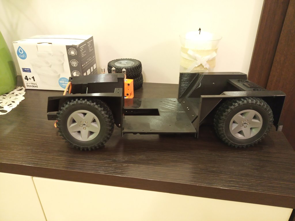 Hej. Od jakiegoś czasu moja drukarka dostarcza kolejne części do https://www.3dsets.com/product/rancher-4x4/ Obecnie już trochę się ich uzbierało, więc przedstawiam postępy prac. Podwozie to PLA Fibrology, felgi PLA PlastSpaw. Obecnie drukuje się buda z PLA Spectrum, wieczorem myślę, pokażę już parę elementów.