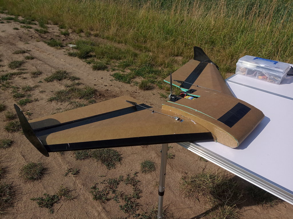 Flite Test Spear Model oblatany na Sunny Sky X2212 900kV na pakiecie 4S Li-Ion i śmigle 9x6. Silnik zbyt przesilony (trochę czuć spalenizną), a mimo to skrzydełko trochę mułowate, trzeba latać na > 70% gazu. Póki co bez wyposażenia FPV.