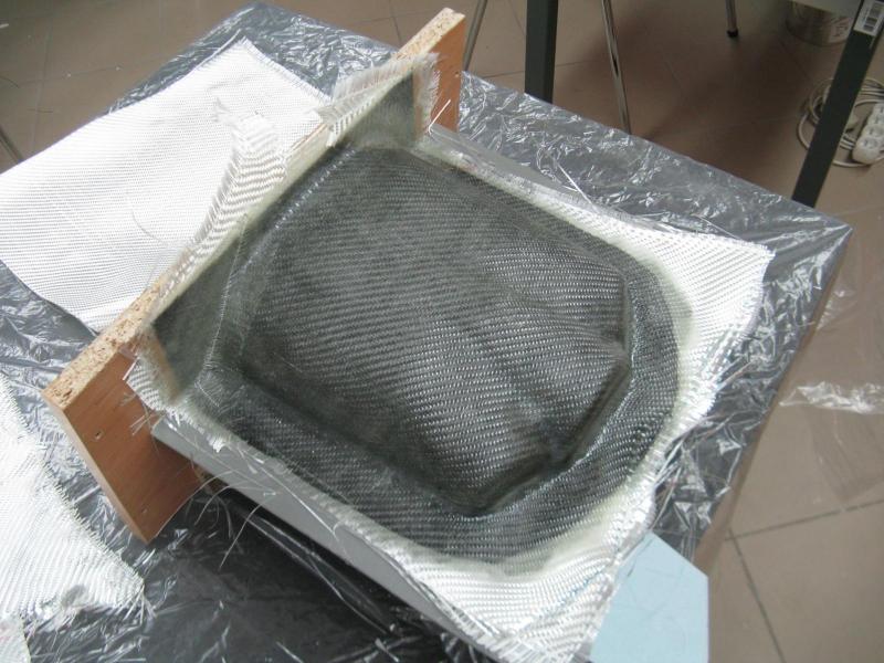 Połówki formy zostały nawoskowane i położony podkład akrylowy zamiast żelkotu. Teraz tylko laminat. -