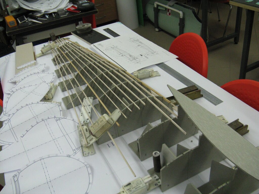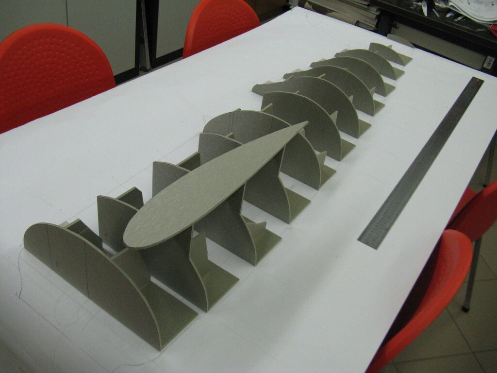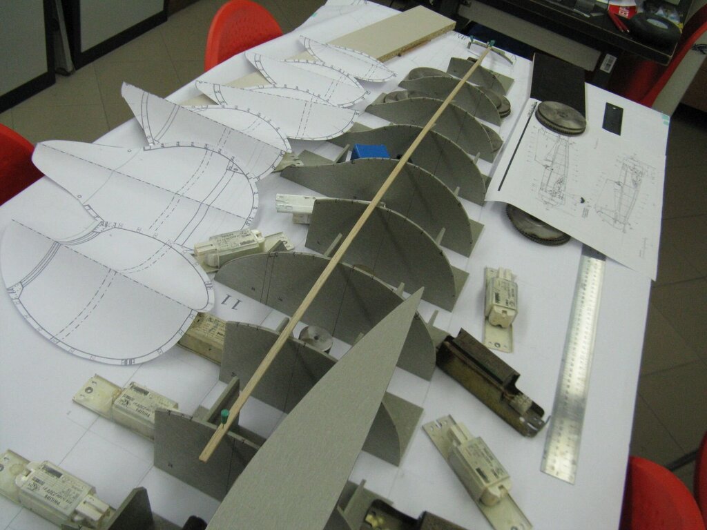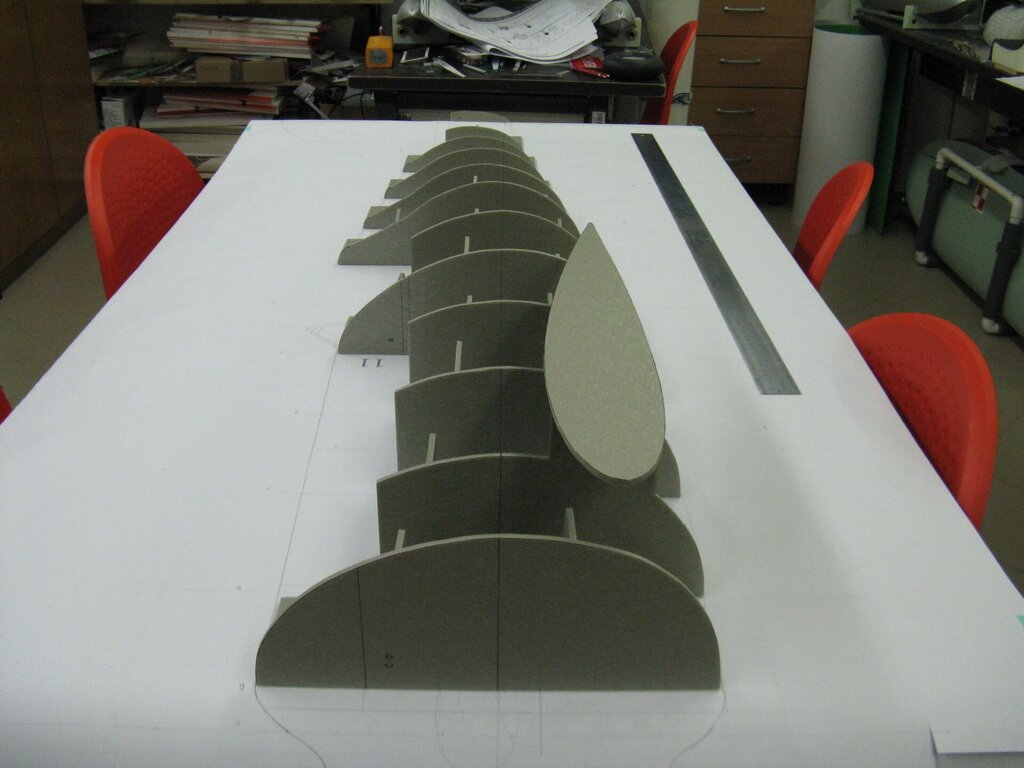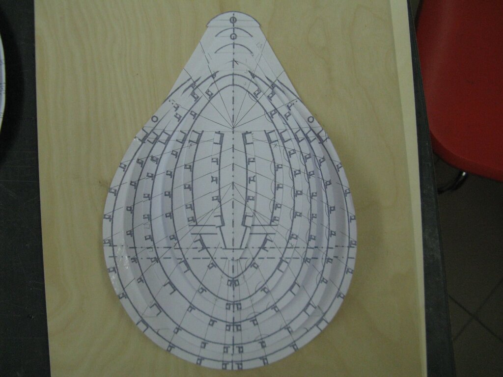 Musiałem popracować nad wręgami. Nic nie pasowało, ani obrysy, ani rozkład podłużnic. Robota ręczna czyli żmudna, ale z efektu jestem zadowolony. Teraz te wręgi powycinać ze sklejki i można bawić się dalej.