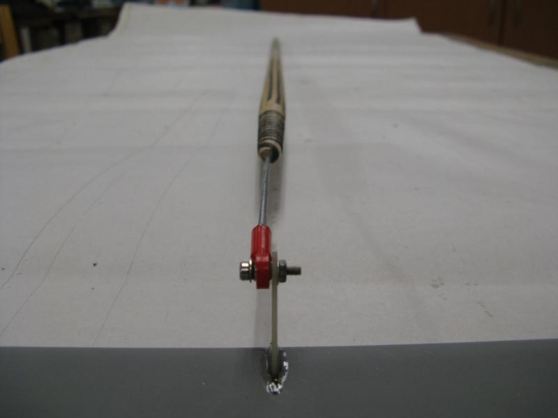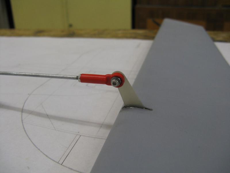 Napęd steru wysokości jest realizowany dość długim (1000mm), sztywnym popychaczem wykonanym z listwy balsowej 13mm zeszlifowanej na ośmiokąt i wzmocnionej rowingiem węglowym. Całość bardzo lekka i sztywna. Snap kulowu dokręcony do dźwigni śrubką nierdzewną M2. -