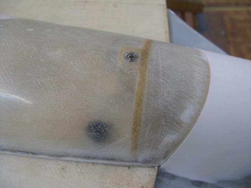 Trochę gimnastyki było z dopasowaniem osłon silników, przez które przechodziło mocowanie pływaków do skrzydeł. Początkowo chciałem przeciąć osłonę na pół, ale potem doszedłem do wniosku, że będzie ładniej jak wytnę otwór w kształcie kropli i przez niego włożę pływak. -