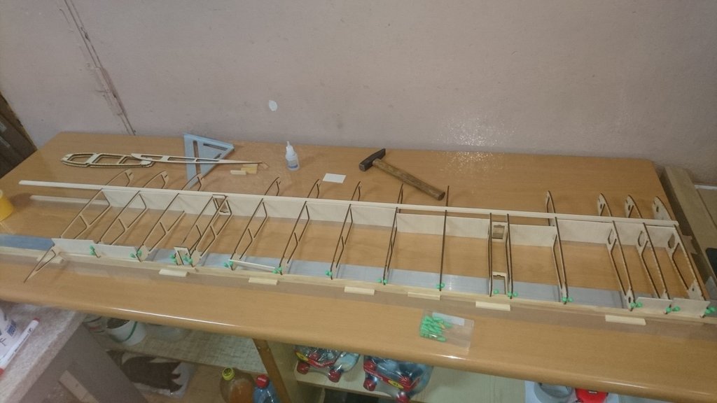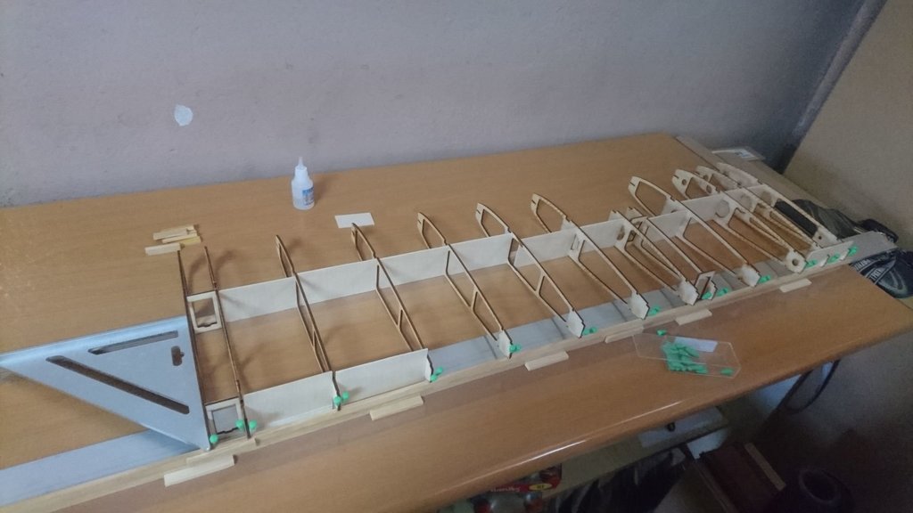 teoretyków zapraszam do zaprezentowania swojej wiedzy w praktyce bo pomimo trwającej epidemii siedzenia w domu nie było wysypu tematów z budowy modeli a jak by człowiek popatrzył to może by się czegoś dowiedział i nauczył bo daleko mi do bycia technicznym guru przekładki idą za dźwigarem z lenistwa i ze względów praktycznych bo nie trzeba być super dokładnym to co wystaje łatwo zeszlifować i jest ich dwa razy mniej ? wytrzymałościowo 200% normy weź tu panie wypełniaj między dźwigarami keson będzie w weekend wycinam przód kadłuba wtedy się zacznie ?
