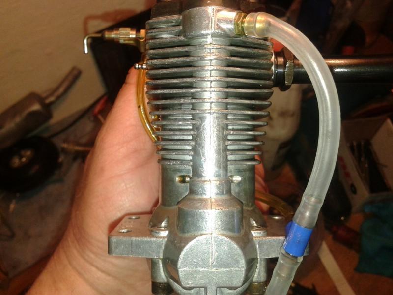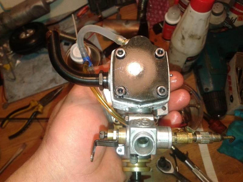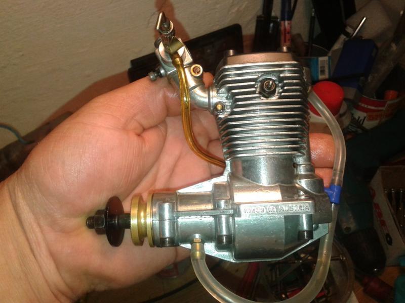 Witajcie jak to bywa mój kolega zostawił mi kilka silników na sprzedaż dwa super tiger 90,jeden os max 91 supras ,jakaś stara webra 6,5cm i właśnie jakiś wynalazek produkcji Austryjackiej o symbolu 8L5 ,w razie pozbywania się takich zabawek to staram się je sprawdzić wzrokowo i praktycznie a tu trafił mi się silnik co nawet nie wiem jak się do końca nazywa, chciał bym go uruchomić ale nie mając za bardzo ogólnych wiadomości to nie potrafię zrozumieć połączeń przewodów jeden jest w głowicy ,drugi w dolnej części bloku i z tego rozchodzi się trójnikiem do przepustnicy ,z tego co rozszyfrowałem to jest to silnik 4t ale bez typowego układu zaworów ,obracając śmigłem co drugi obrót wału generuje się dość spora kompresja. Cóż to za cudak, może ktoś z kolegów miał coś takiego w użytkowaniu ,silnik wygląda na prawie nowy nawet świeca jest jak by nigdy nie chodziła .a tu jeszcze fotki.