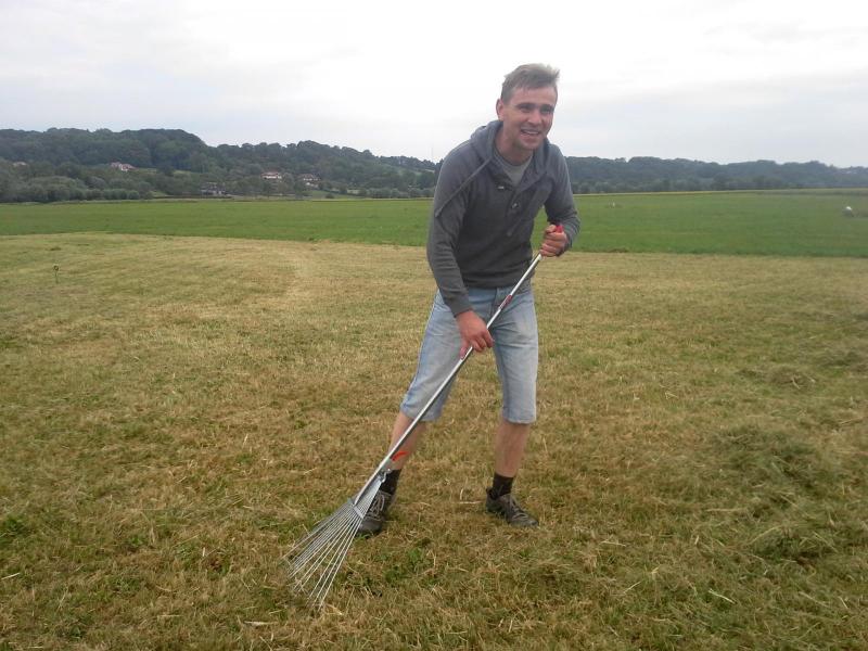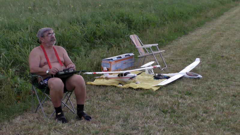 OOOOOO ale się działo Pogody na latanie zbytnio nie było więc się zebraliśmy by popracować przy lotnisku Pokosiliśmy do końca teren Pograbiliśmy to co było rano skoszone A potem udało się niektórym polatać Robiło się ciemno a oni nadal latali tak się nagrzali Jeden tak się zmęczył aż musiał się położyć