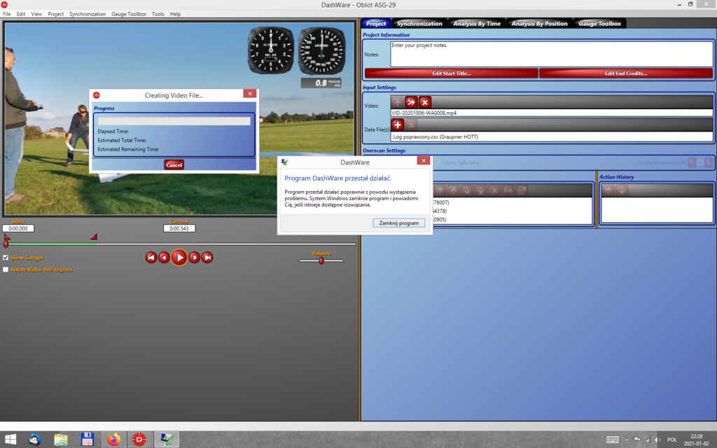 Informuję, że właśnie udało mi się uruchomić zegary . Nie wiem, czy to konieczne, ale w pliku wygenerowanym z Data Explorera pozmieniałem nazwy kolumn żeby nie miały spacji i innego niepotrzebnego tekstu, okroiłem go też tylko do potrzebnych mi informacji. Być może to było zbędne ale w końcu ruszyło. Co do rozjeżdżania się danych to mój pierwszy film jest krótki ok. 1 min i nie zauważyłem narazie żeby coś nie grało. Pytałem o to wario bo w gotowych zegarach oferowanych przez Dashware są fajne analogowe ale wariometr jest tylko w stopach/min. Czarobest jeszcze raz dzięki za pomoc! Kluczową sprawą było stworzenie profilu dla Hott'a i wczytanie tych danych. Z pozostałymi sprawami powinienem sobie poradzić. Pozdrawiam i wszystkiego dobrego w Nowym Roku Marcin