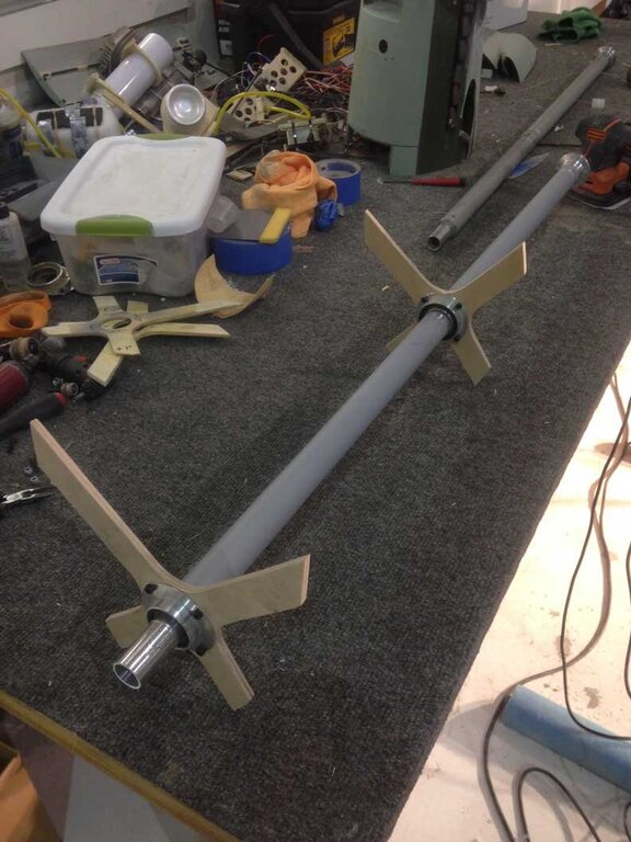 Cześć, Usiłuję dobrać materiał na wał napędowy łączący silnik benzynowy ze śmigłem. Silnik będzie znajdował się w kadłubie Do 335. Do śmigła które jest z tyłu modelu jest około 1m. Silnik wstępnie ZG45 dlatego ,że ma dobre wyjście z tyłu co da więcej możliwości wyboru śmigieł (zwykłe ciągnące), śmigło 22' Moc około 4.5 KM Oczywiście chciałoby się więcej np. ZG62 albo któryś z nowszych 3D motorków ale ten wał? Jak, z czego? itd. Kolega w ślizgach ma wały 500 mm z 5 mm pręta do form (hartowana stal 1.2344) - obroty? duże ~17000 moc około 10KM i to wytrzymuje. W napotkanych w necie konstrukcjach wał był aluminiowy - rurka ~16 mm (PA7?PA45?) jak na zdjęciu. Połączone to sprzęgłem dyskowym tak do 35Nm. Chyba można zastosować lżejsze, kłowe z wkładką. Potrafią przenieść więcej przy niższej masie. Ta szara część jest nałożona na rurę alu i też się kręci (kompozyt?) Poradźcie coś. Stosowałem 5mm wypychacze do form ale do EDF-a. Tam było tylko 1400W. Żadnych oczywiście problemów zmęczeniowych. Ale tutaj? Drgania, oscylacje... Napisałem do Engela który sprzedawał kiedyś te wały do Do335 ale milczy. Może taki https://www.ebmia.pl/walki-aluminiowe-drazone/94014-429-walek-aluminiowy-drazony-awmr-25-d.html#/27-dlugosc-1000_mm ale nie wiem z czego to Pręty drążone z PA45 (6061) to od 1 cala dostępne Tak się pacze i pacze na te wały i one faktycznie mogą mieć 25 mm bo sprzęgło chyba 53 mm.