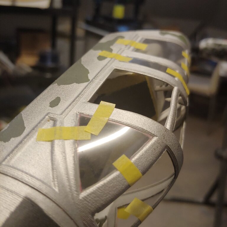 Drukowanki można malować aerografem ale na "półsucho". Lepiej jednak wcześniej całość pokryć cieńką warstwą filllera. Doskonały jest biały akrylowy Boll w puszcze. Przyrost masy jest pomijalny a farba się już nie rozlewa kapilarnie. Tak samo naklejki. Rondelki to folia Oracal 551. Dobrze się trzyma i układa bo to folia wylewana. Panele szyb wyciąłem nożem na zimno. Wycięte służą jako szablon. Szybki z okładek wklejam na Canopy glue . Z przednią będzie problem bo jest nierozwijalna.