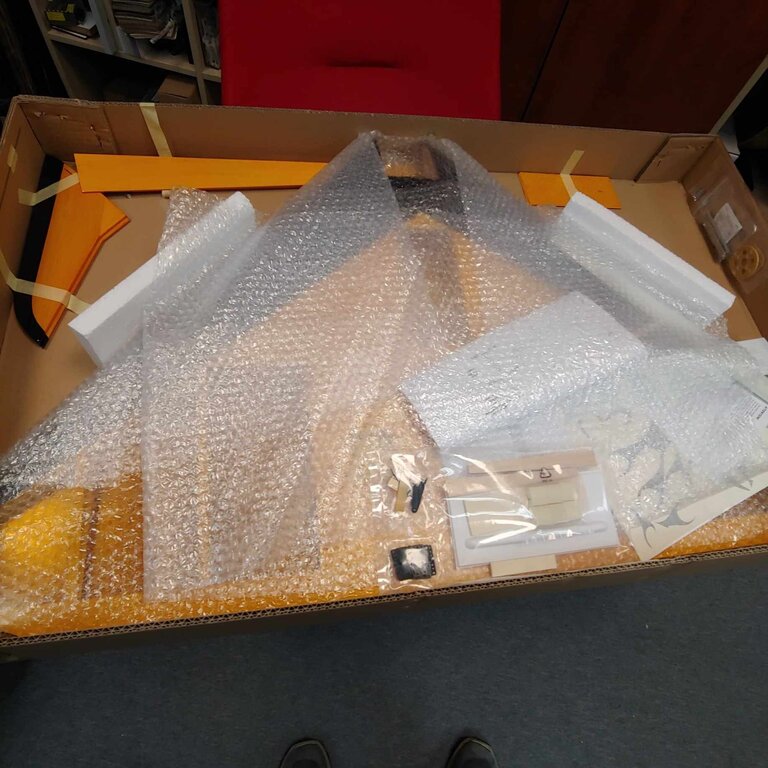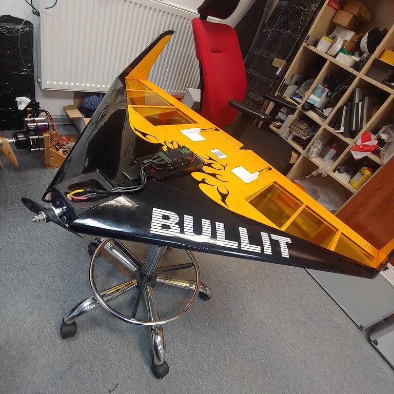 Cześć, Chodziła za mną latami. W końcu udało się zakupić w Nastiku z zamiarem prawidłowego zmotoryzowania. Do wyboru był OS 15 cm VRDF albo napęd elektryczny. Ze względu na małe problemy ze śmigłami do OS-a /potrzebne 10x12, które się nie rozpadnie co przekreśla APC 10' i z mocniejszym hubem 12'/ postanowiłem skompletować napęd elektryczny. Śmigłowcowy Scorpion 4035 500kv i pakiet 12s 3Ah - więcej się nie zmieści (mowa o 12 s). Śmigło Bartels węglowe 9x12 jest niestety nieco za małe ale na początek zostaje. Mam jeszcze szklane 10x12.5 ale to zabytek i jest dosyć ciężkie. Model przyszedł w podwójnym pudełku bezpiecznie. Uwielbiam te czeskie galaretki... Sam model wykonany bardzo dobrze i lekko. Instrukcja zawiera wszelkie niezbędne informacje. Rozpiętość 1095 mm Długość 870 mm Powierzchnia 49,7 dm2 Przewidywana waga do lotu 1.6 - 1.9 kg Profil BELL 540 Producent przewidział możliwość montażu silnika spalinowego 6.5-10 cm lub elektrycznego Mega ACn 22/30/3E W zestawie jest laminatowe łoże pod silnik elektryczny ( na 4 prętach duralowych 6 mm + 2 kształtki) Po próbie przystosowania tego łoża do Scorpiona odpuściłem i wykonałem nieco solidniejsze sklejkowe łoże. Ze względu na wyważenie cofnąłem regulator i umieściłem go na uchylnej sklejkowej podkładce. Pakiety weszły na wcisk po podebraniu materiału ze sklejkowych żeber głównych. Model ma specjalną wnękę do wyrzucania na spodzie kadłuba. Jest sensownie umieszczona i pasuje do dłoni. Serwomechanizmy Graupner 708 BBMG. Niestety popychacze były bardzo miękkie i są w rurce węglowej. Winglety przykleiłem na stałe zgodnie z instrukcją. Model przytył do 2.63 kg co napawało mnie obawami o wyrzut. Do momentu kiedy nie uruchomiłem silnika. Śmigiełko Bartels ma na pewno 9 cali średnicy ale skoku nie widać. Miało mieć 12 cali skoku ale wydaje się, że bliżej mu do 16 cali bo prąd skoczył do 95 A. Wg Ecalca na śmigle 9x12 powinien brać 70A. Do oblotu postanowilem je zostawić. Docelowo założę składane 10x13 RFM (jak tylko doczytam czy się nie rozpadnie) Dziś wykonaliśmy oblot z Arkiem. Na lotnisku nikogo nie było. Niestety nie zdążyłem z dobrą pogodą, było wietrznie i turbulentnie (wiatr od lasu). Nie za szybki ale chyba porównywalny do Speed Cobry z VRDF. Gruby profil daje o sobie znać. Niestety ze względu na widoczność nie rozpędzałem go na dłużej. Po małym tuningu sterowania będą z niego ludzie. Taki low cost speeder Tutaj film z oblotu