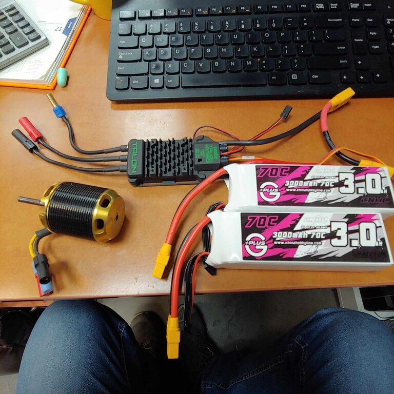 Testy, testy...Na razie mam dwa różne akumulatory i brakuje drugiego Mezona żeby odczytać obroty. Ale jestem dość zadowolony. Około 30-35kg ciągu i wiatr 140km/h. Trochę się go boję. 462387959_8211499118960884_2011171904951664017_n.mp4 462421073_7985318641572102_6095283225504750153_n.mp4