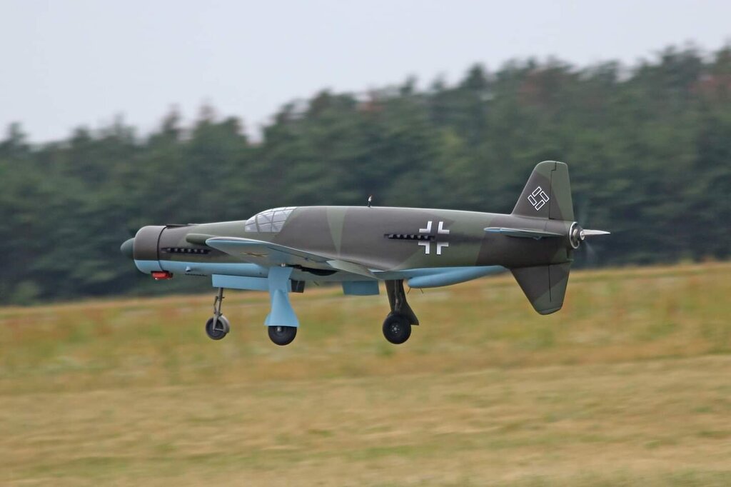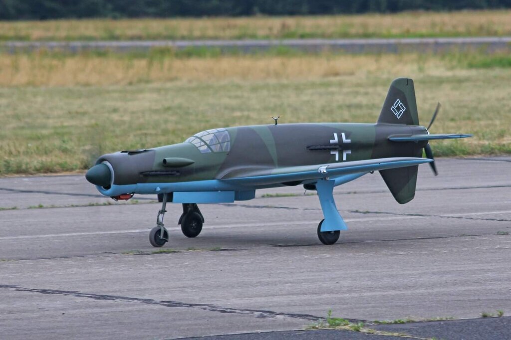 Tak. Do 335 był dość awangardową konstrukcją. Problemy sprawiało podwozie, silnik, wyrzucany fotel, pomysły RLM itd. Bardzo zaawansowane były prace nad wersją 435 z silnikem turboodrzutowym z tyłu. Szczęśliwie, problemy nie trapią modelu bo to jedynie ćwierćmakieta ;). Dodatkowo napęd spalinowo elektryczny inline potrafi pozytywnie zaskoczyć. Zużycie prądu po 4-5 minutowym locie to jedynie 600mAh. Aż muszę sprawdzić logi, bo wydaje mi się, że jednak daje sporego boosta. Czyżby tylne śmigło pracowało za darmo? Wiadomo, że w strumieniu przedniego ale to dość ciekawe.